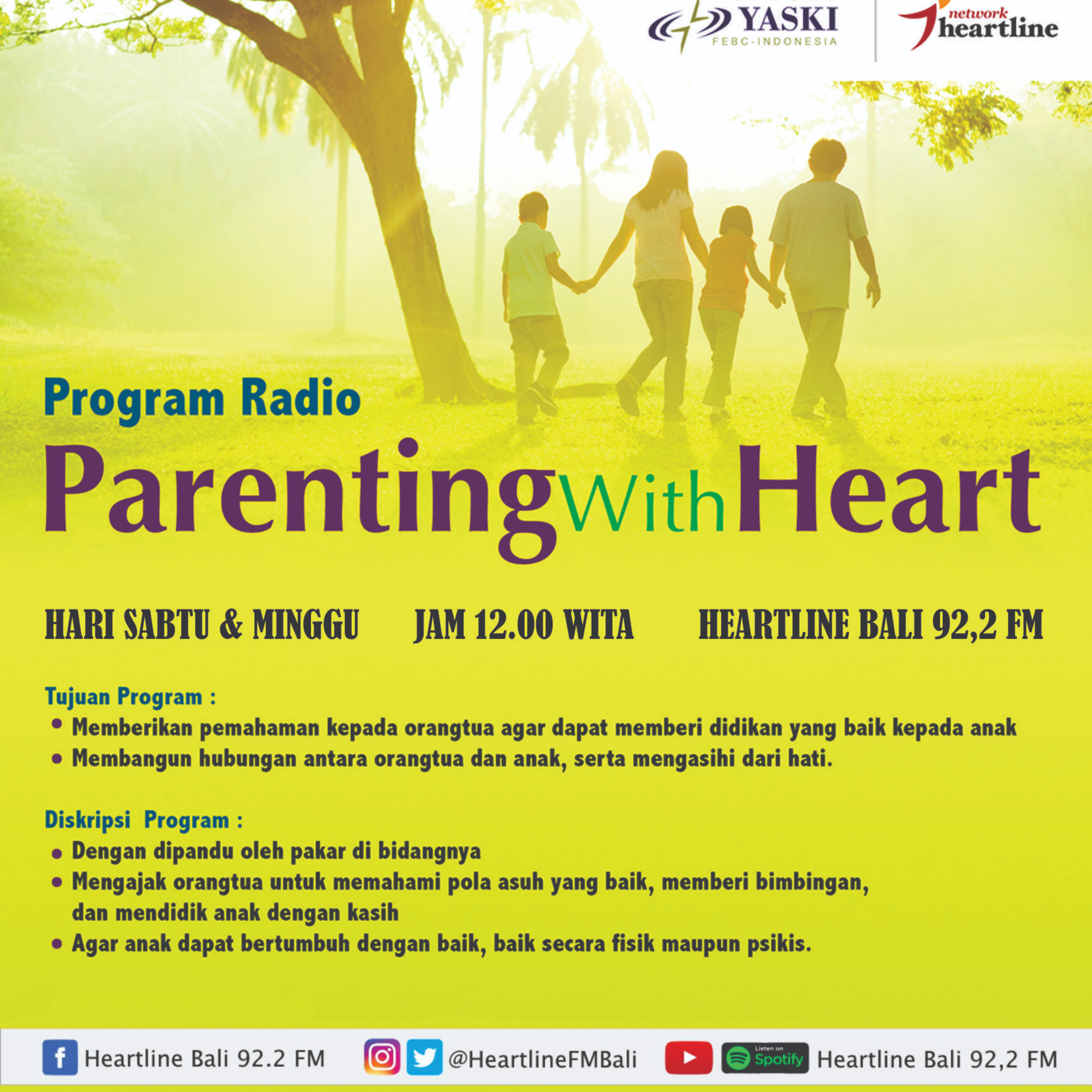 Dengan dipandu oleh pakar di bidangnya Mengajak orangtua untuk memahami pola asuh yang baik, memberi bimbingan, dan mendidik anak dengan kasih Agar anak dapat bertumbuh dengan baik, baik secara fisik maupun psikis.