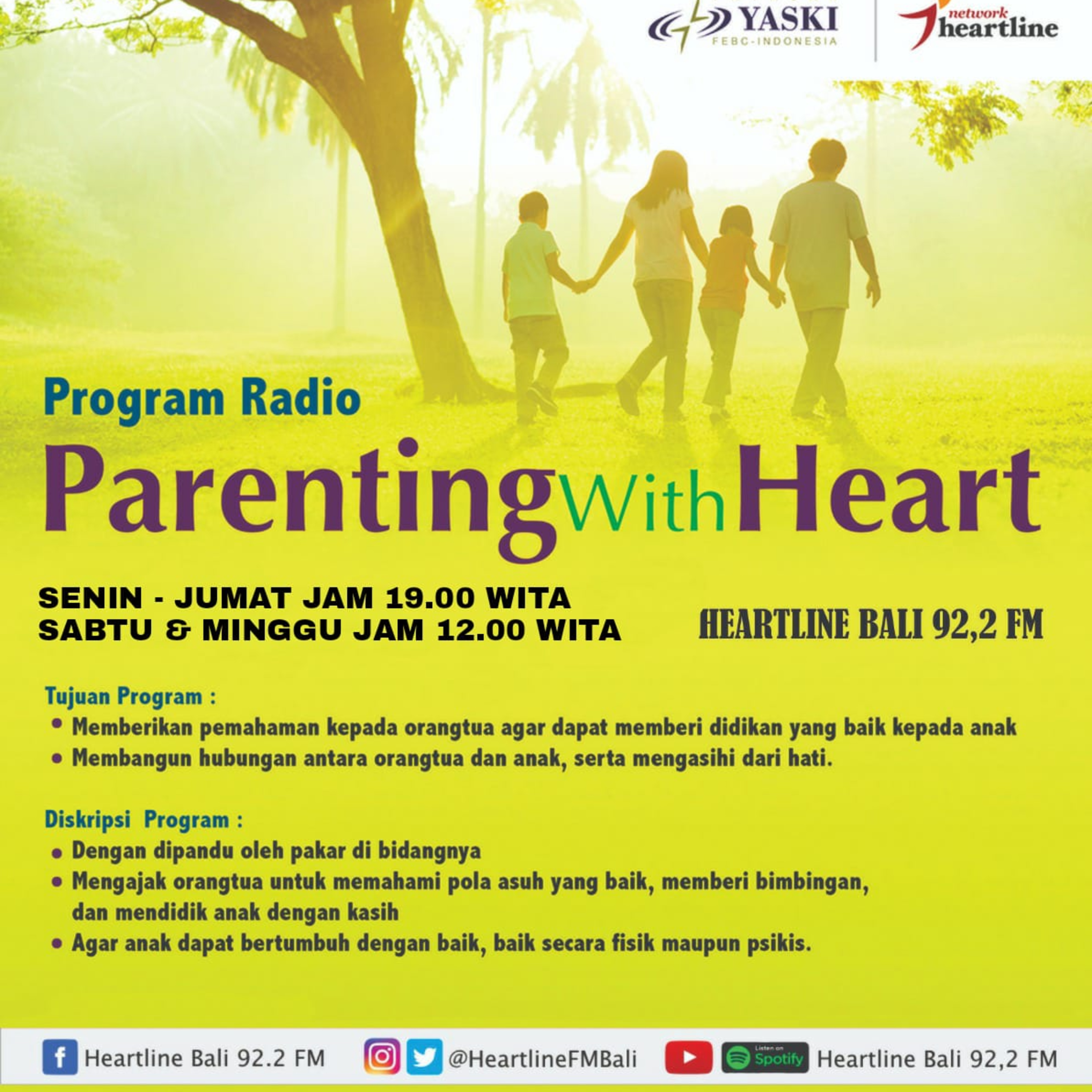 Dengan dipandu oleh pakar di bidangnya Mengajak orangtua untuk memahami pola asuh yang baik, memberi bimbingan, dan mendidik anak dengan kasih Agar anak dapat bertumbuh dengan baik, baik secara fisik maupun psikis.
