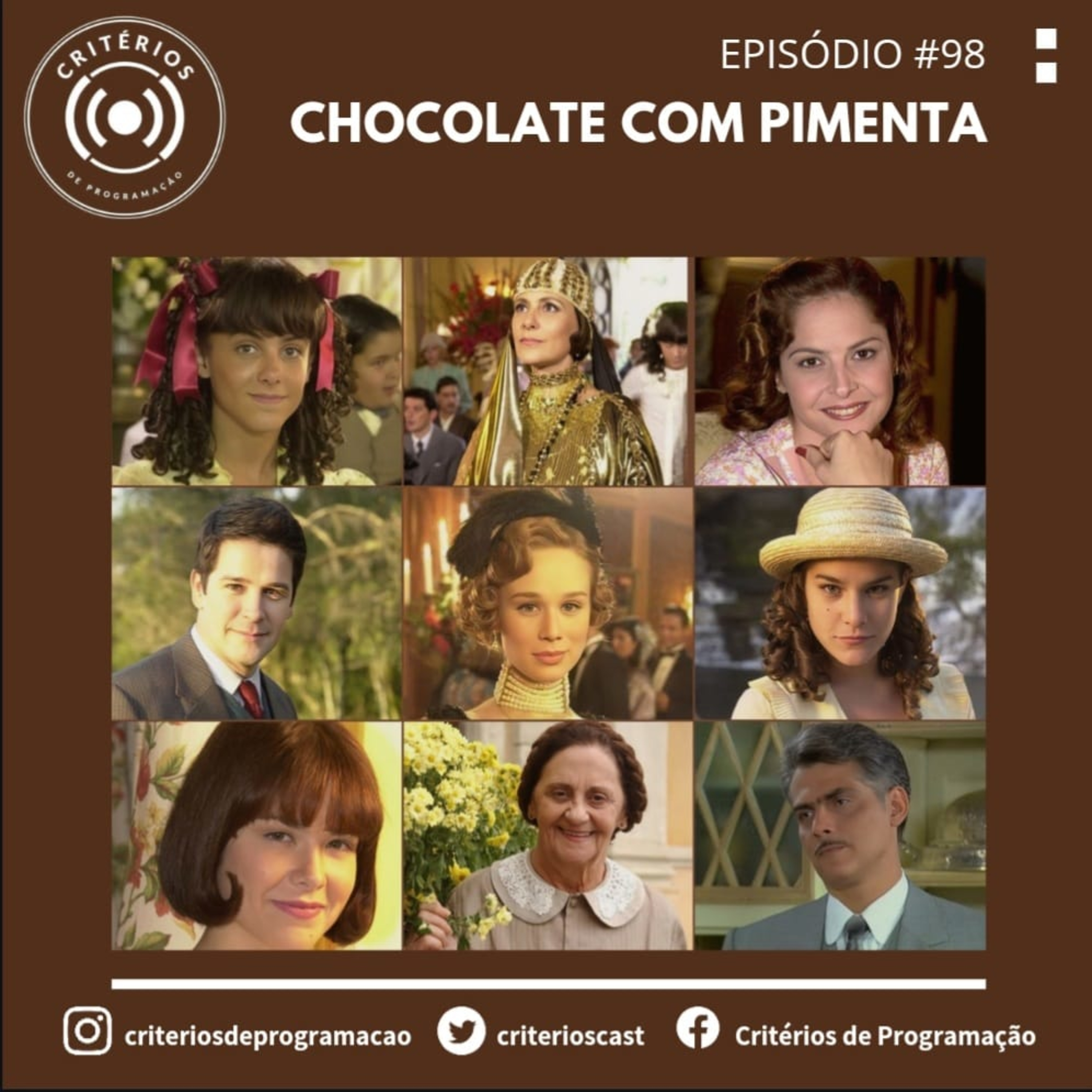 ATENÇÃO • Episódio postado originalmente em 21/09/2022. Repostamos para remover músicas utilizadas no episódio por conta de direitos autorais.UMA NOVELA DELICIOSA • Na próxima semana estará de volta (mais uma vez) "Chocolate Com Pimenta", a próxima atração das tardes da Globo. Contamos os textos que inspiraram a novela, os detalhes da escalação do elenco e relembramos o porquê dessa história sempre encantar o público. Você encontra os links das nossas redes sociais e das plataformas de streaming onde estamos disponíveis no nosso Linktree: https://linktr.ee/criteriosdeprogramacaoNosso podcast faz parte da rede #LGBTPodcasters. Para conhecer outros tão legais quanto o nosso, acesse www.lgbtpodcasters.com.br.Roteiro: Fábio SousaEdição e Montagem: João DantasPesquisa: Fábio Sousa e João DantasDireção Criativa: Fábio Sousa