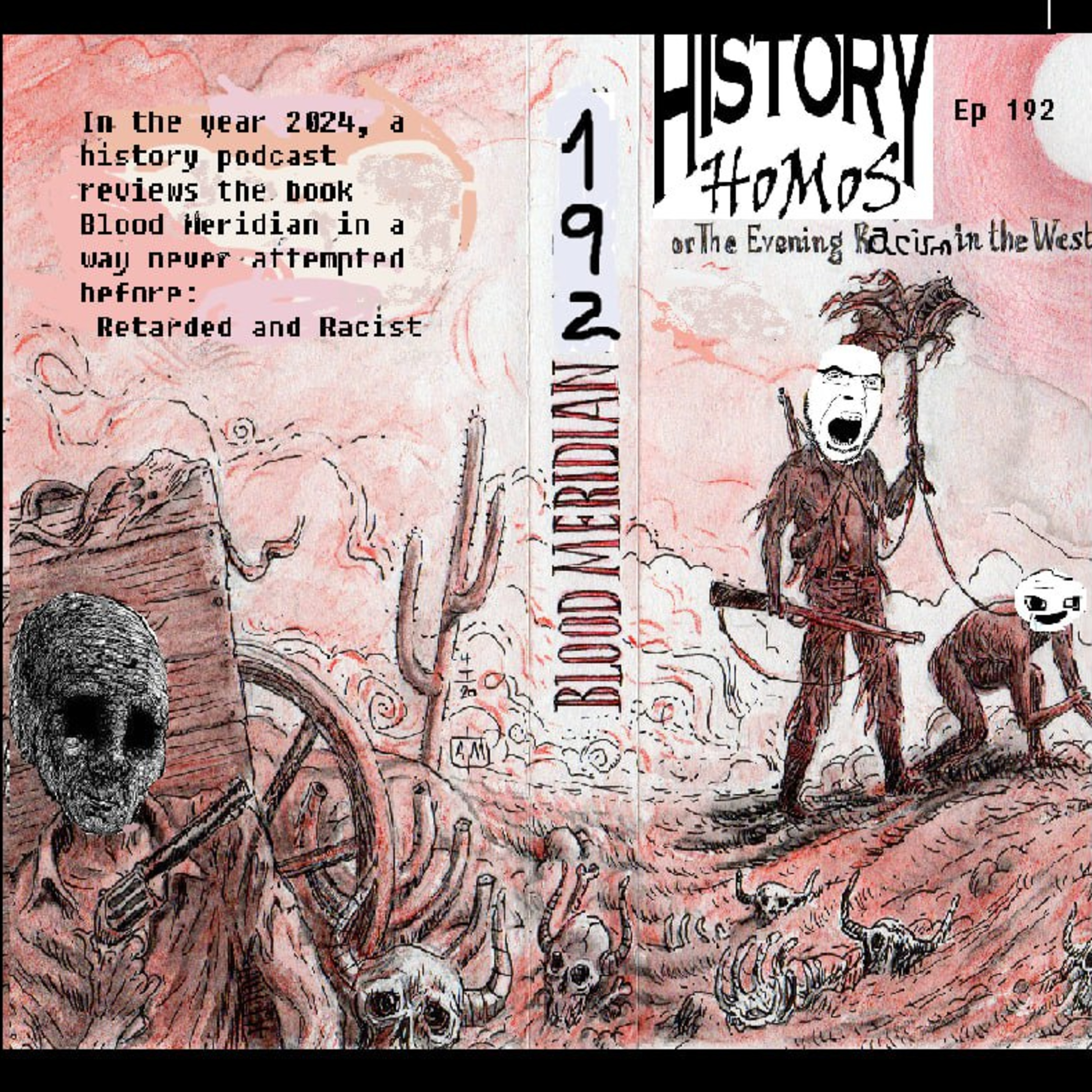 This week we are joined by member of the History Homos community and fledgling media mogul Patrick of the multimedia experience CANTGETFOOLEDAGAIN.com We discuss the 1985 Cormac McCarthy Novel, Blood Meridian, a story chronicling the exploits of an unnamed 16 year old Tennessean known as The Kid on his descent into a hellish Mexican landscape with a band of partisan soldiers on a contract to collect Indian scalps for gold.