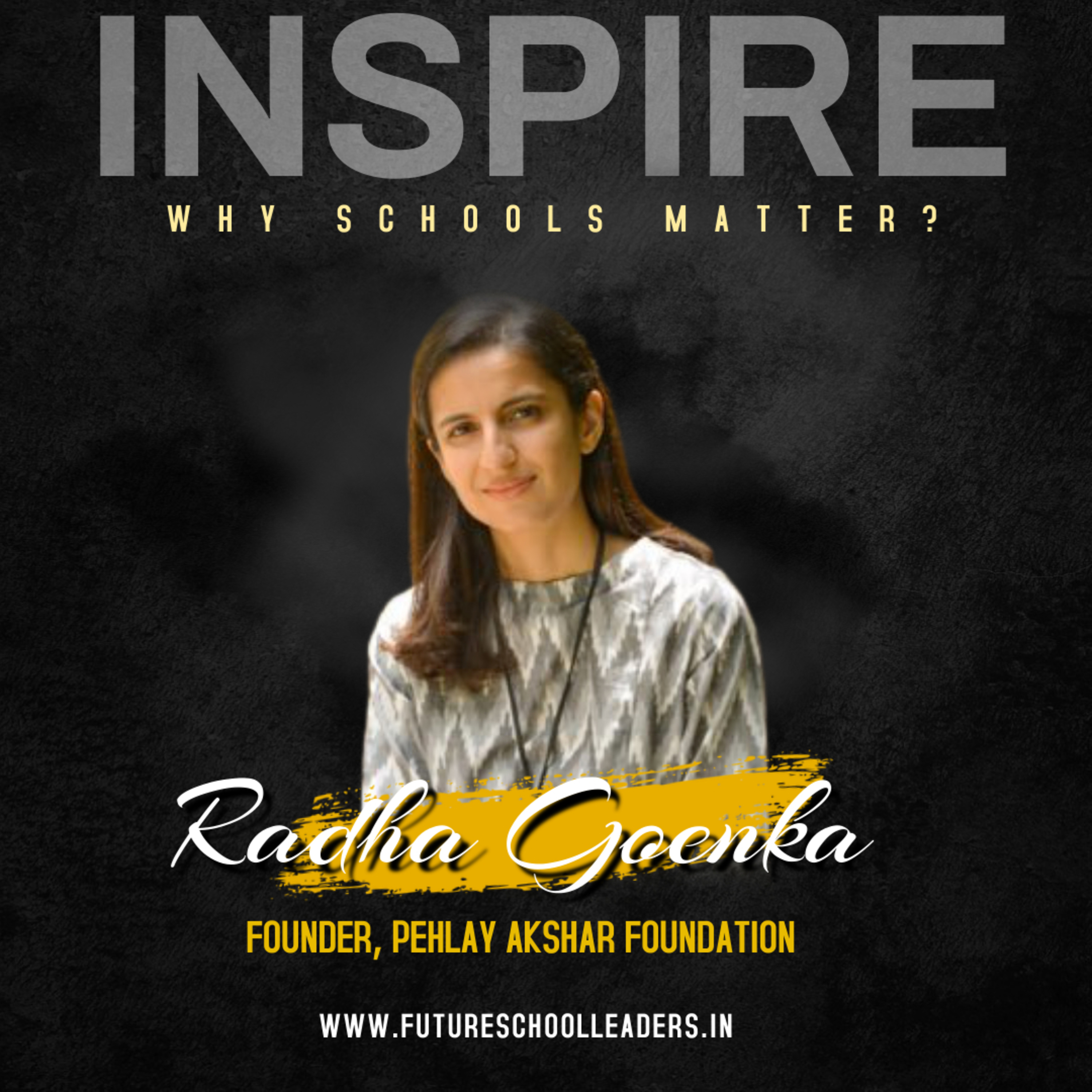 About Speaker: Radha Goenka founded Pehlay Akshar Foundation in 2008. Looking at the disparity in the quality of education between private and Government schools, Radha felt the need to develop a program that is designed for 1st generation learners, focuses on tapping a child’s natural curiosity and builds critical thinking and communication skills. Her experience in the social sector has helped shape, expand and enrich the programs and organisations she leads, making them a powerful element in her overarching mission to drive employment and transform lives in India. #INSPIRE #WhySchoolsMatter?