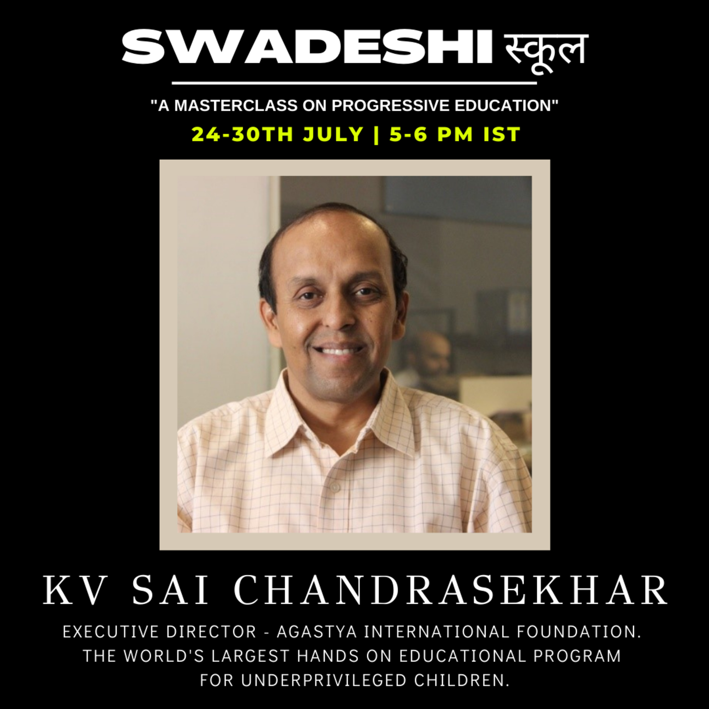 About Speaker: Sai Chandrasekhar is the Chief of Operations at Agastya International Foundation, Bangalore, a non-profit which runs the world’s largest hands-on science education program serving the education needs of economically backward school children in 21 states across India. He is a member of the senior management of Agastya and is actively involved in Strategy and Planning as well in addition to Operations. Sai has spent over 8 years at Agastya and has seen it grow manifold over this period. Sai is very passionate about education and strongly believes in the concept of self-learning. He is an Electrical Engineer and an alumnus of the Indian Institute of Management, Calcutta. He also attended a program on Strategic Perspectives in Non-Profit Management at the Harvard Business School. Prior to joining ECF, Christina earned her doctoral degree at the University of Illinois at Urbana-Champaign and has held positions in academic administration at Brown University, Rhode Island and FLAME University, India. #Swadeshiस्कूल #ProgressiveEducation #UnconventionalMinds