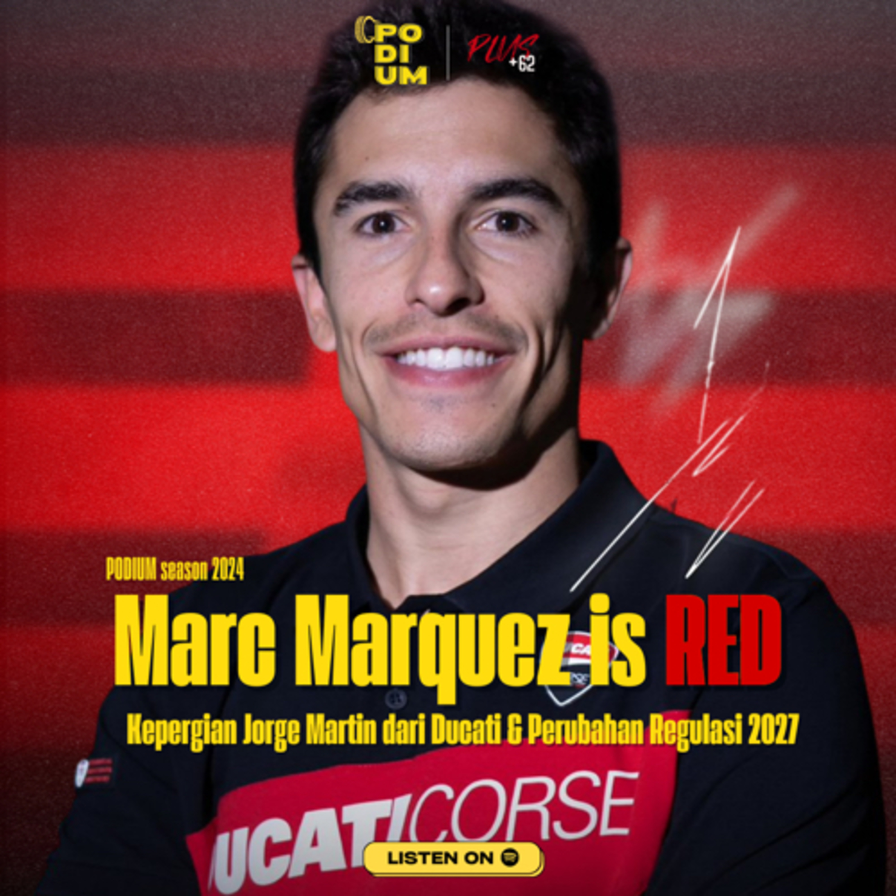 Photoshop di tahun 2017 itu ternyata benar-benar terjadi di tahun depan. Marc Marquez resmi akan membalap untuk Ducati pabrikan musim depan, menjadi rekan murid Valentino Rossi yaitu Pecco Bagnaia. Episode ini membahas tentang kepindahan Marquez ke Ducati pabrikan, untung-rugi perginya Martin dan Bastianini, hingga perubahan regulasi untuk 2027