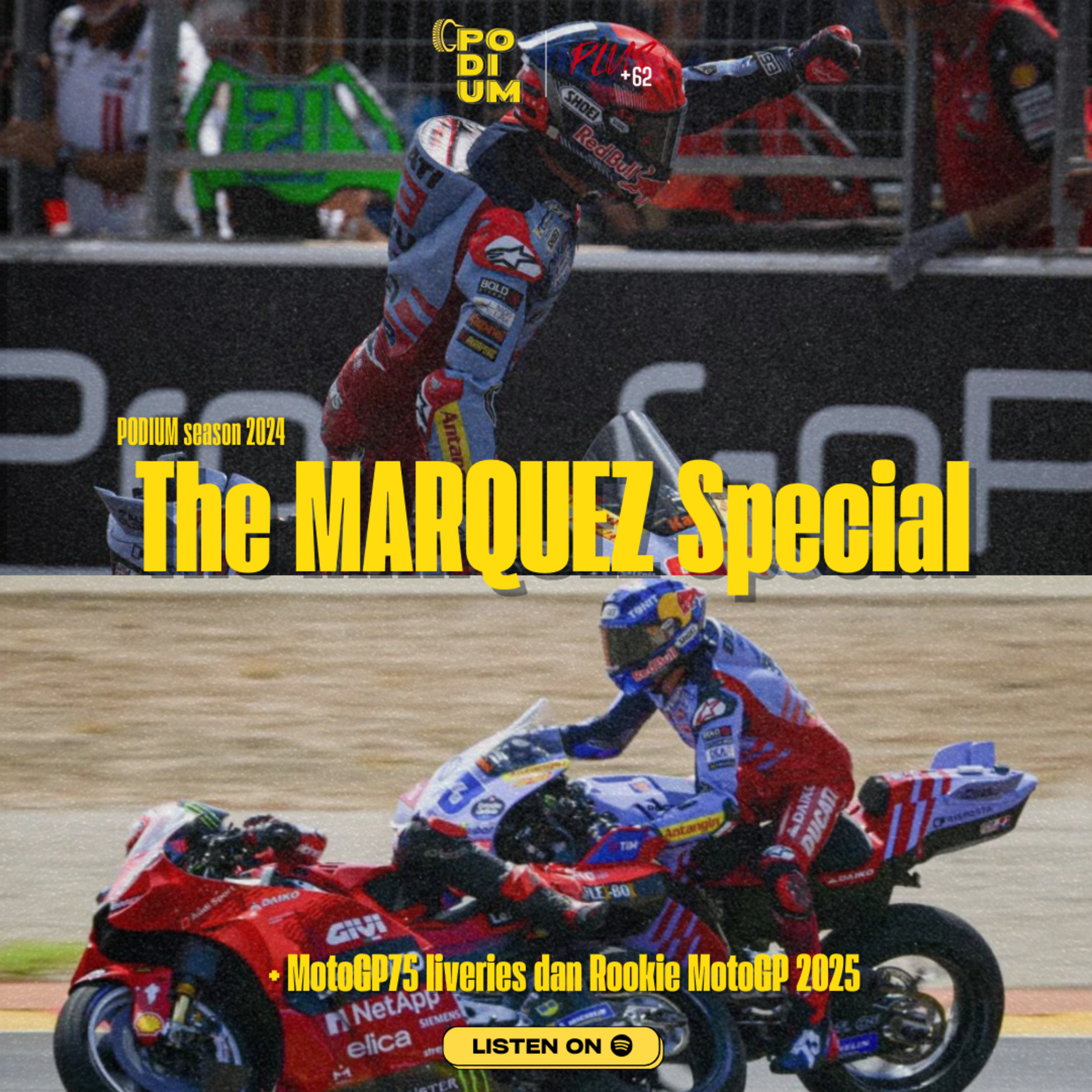 Episode ini ngobrolin tentang kemenangan dominan Marc Marquez, nasib terbaik sang adik si Alex yang nubruk Pecco, championship battle Pecco-Martin, serta pembahasan livery spesial MotoGP75 dan promosinya 3 pembalap Moto2 ke kelas utama!