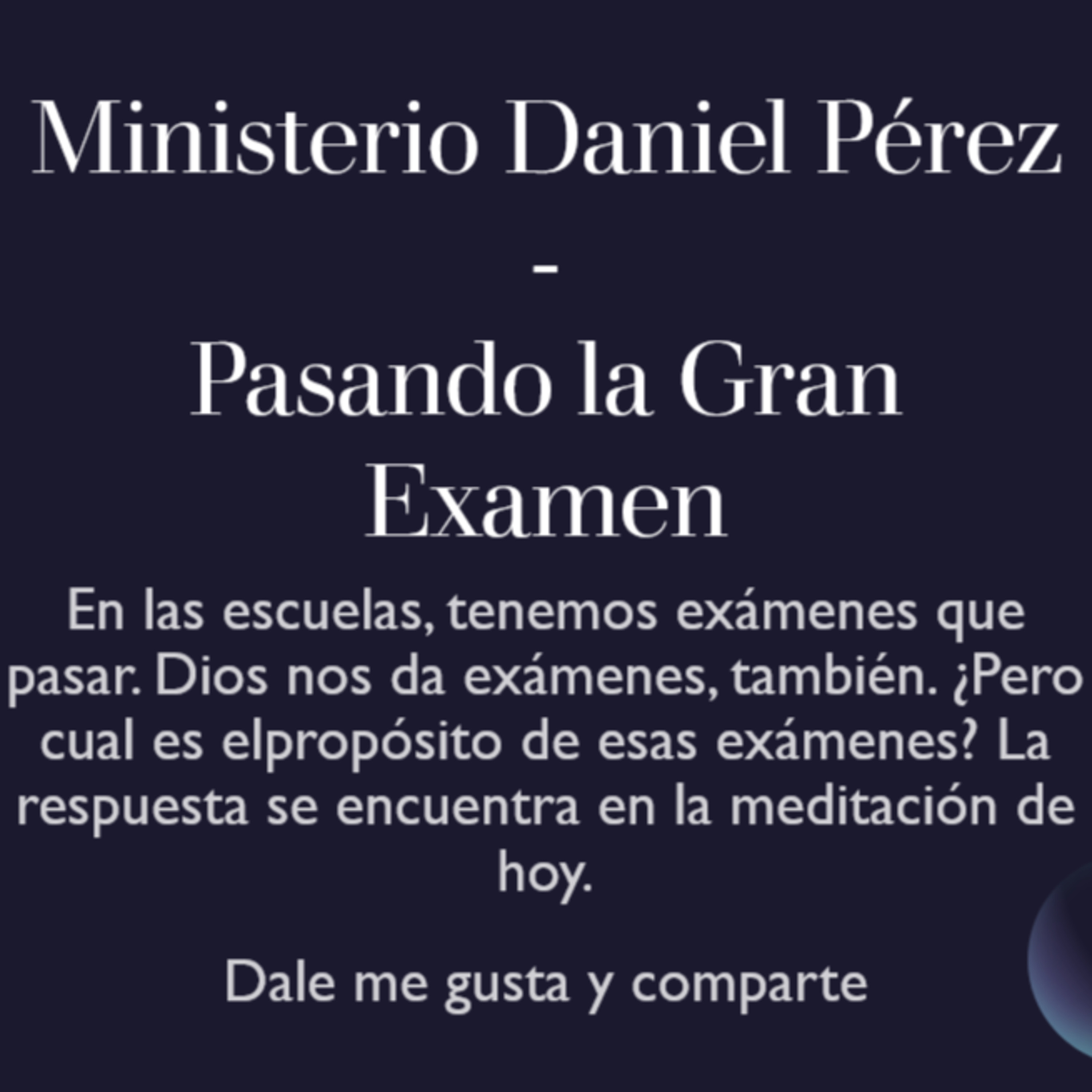 En las escuelas, tenemos exámenes que pasar. Dios nos da exámenes, también. ¿Pero cual es elpropósito de esas exámenes? La respuesta se encuentra en la meditación de hoy.