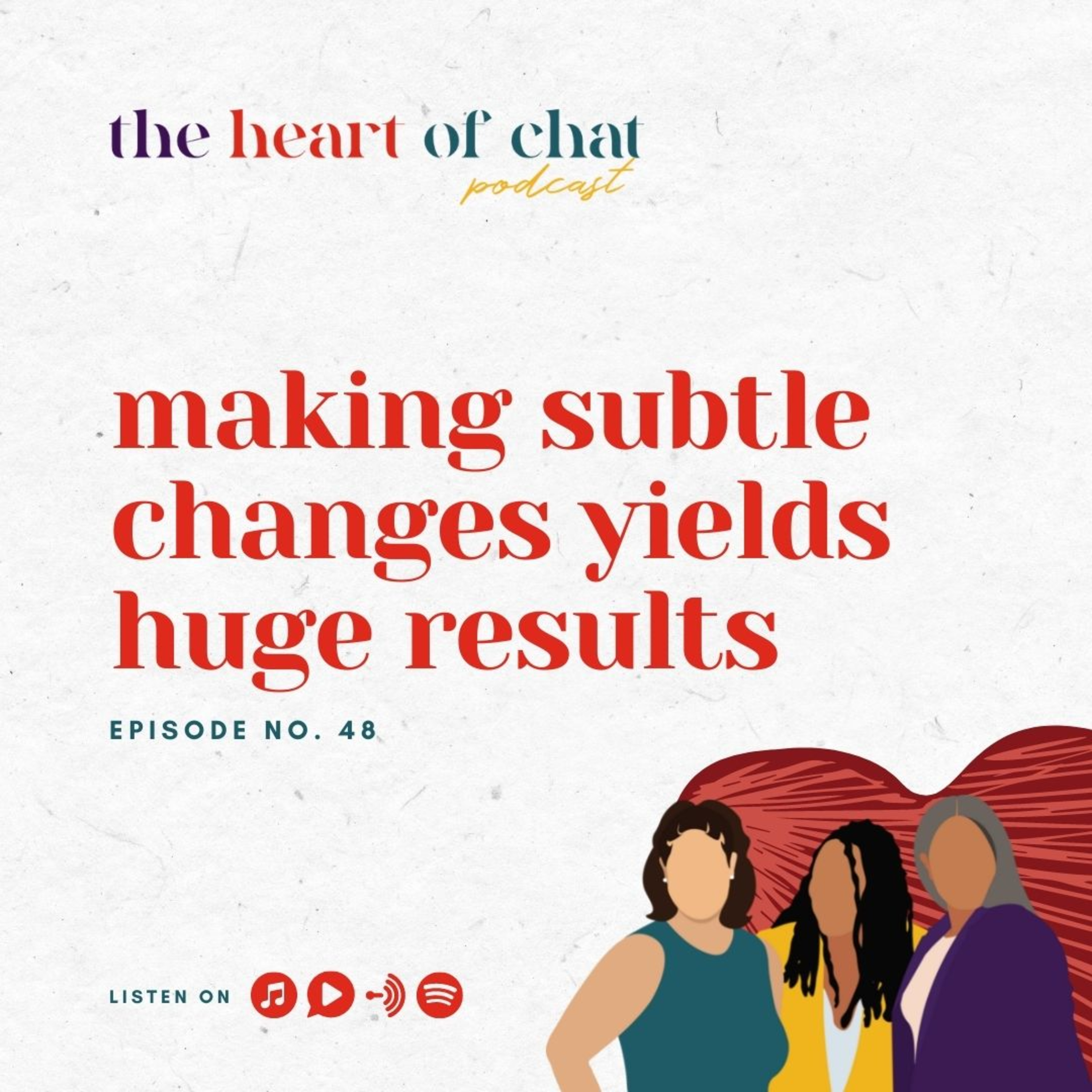 Episode 48 this week is Making Subtle Changes Yields Huge Results. We had fun with this episode and it almost was an unscripted! We started talking about how making subtle changes in our lives will yield the best results. And then…someone said the word “cupcake” and that was it!
