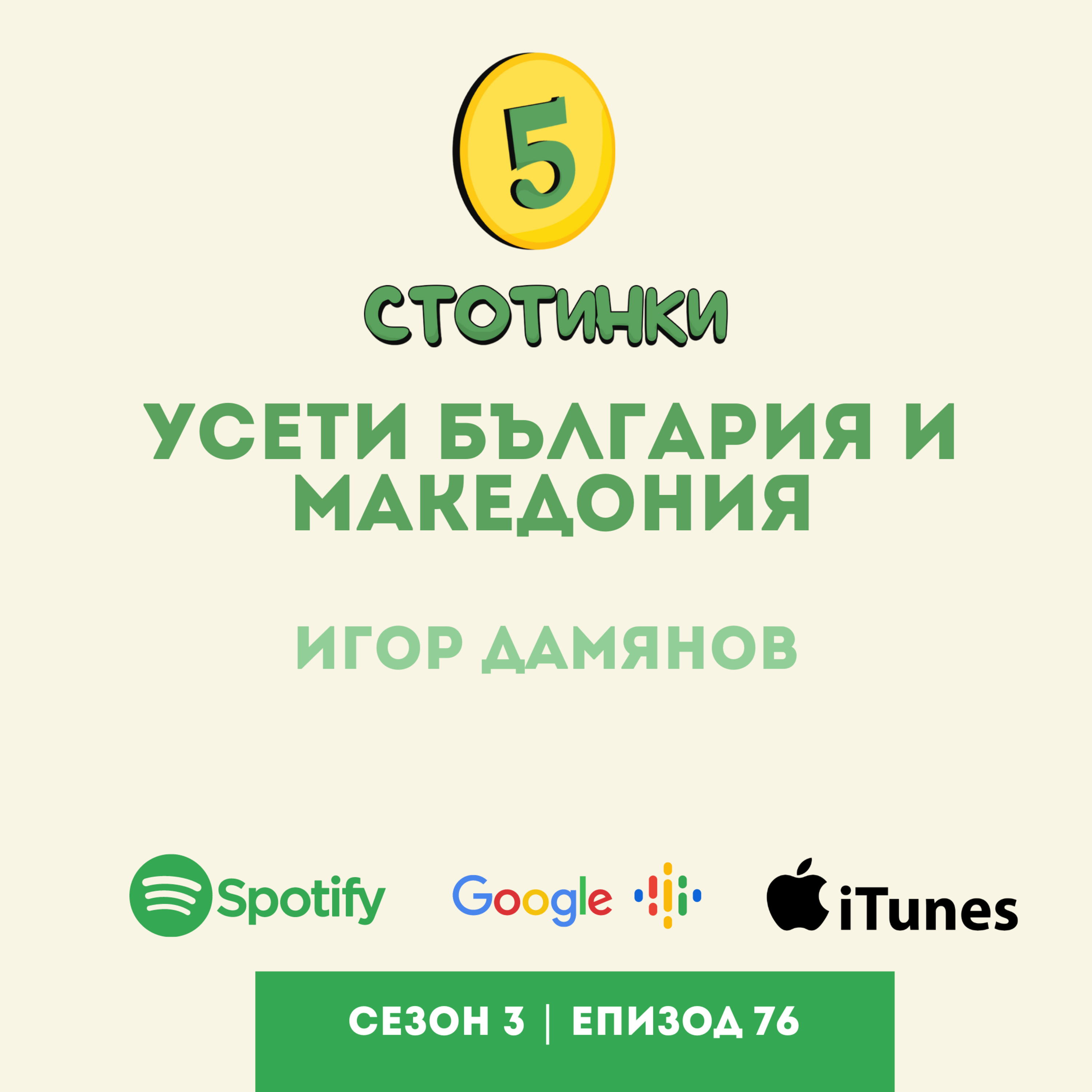 С Игор Дамянов ни свърза един наш доста известен гост – Георги Кючуков-Кмета. Помните го от епизода „Боза за всички“. А Игор е от Виница, Северна Македония. Идва тук да учи и остава. Води радиопредавания, учи актьорско майсторство, прави видеоклипове, показващи хубавото тук и поддържа канал, който се наричча Feel Bulgaria with Igor Damyanov. Епизодът започва, разбира се, от Виница, където е било детството му и минава през времето на разпада на бивша Югославия с всичките обрати, които едно момче може да усети в онзи момент, както и за връзката между хората от двете страни на границата, а и как е изглеждала България тогава в неговите очи. Говорим за първите му впечатления от България, за отношението между българи и македонци, за отношенията между хората по принцип.