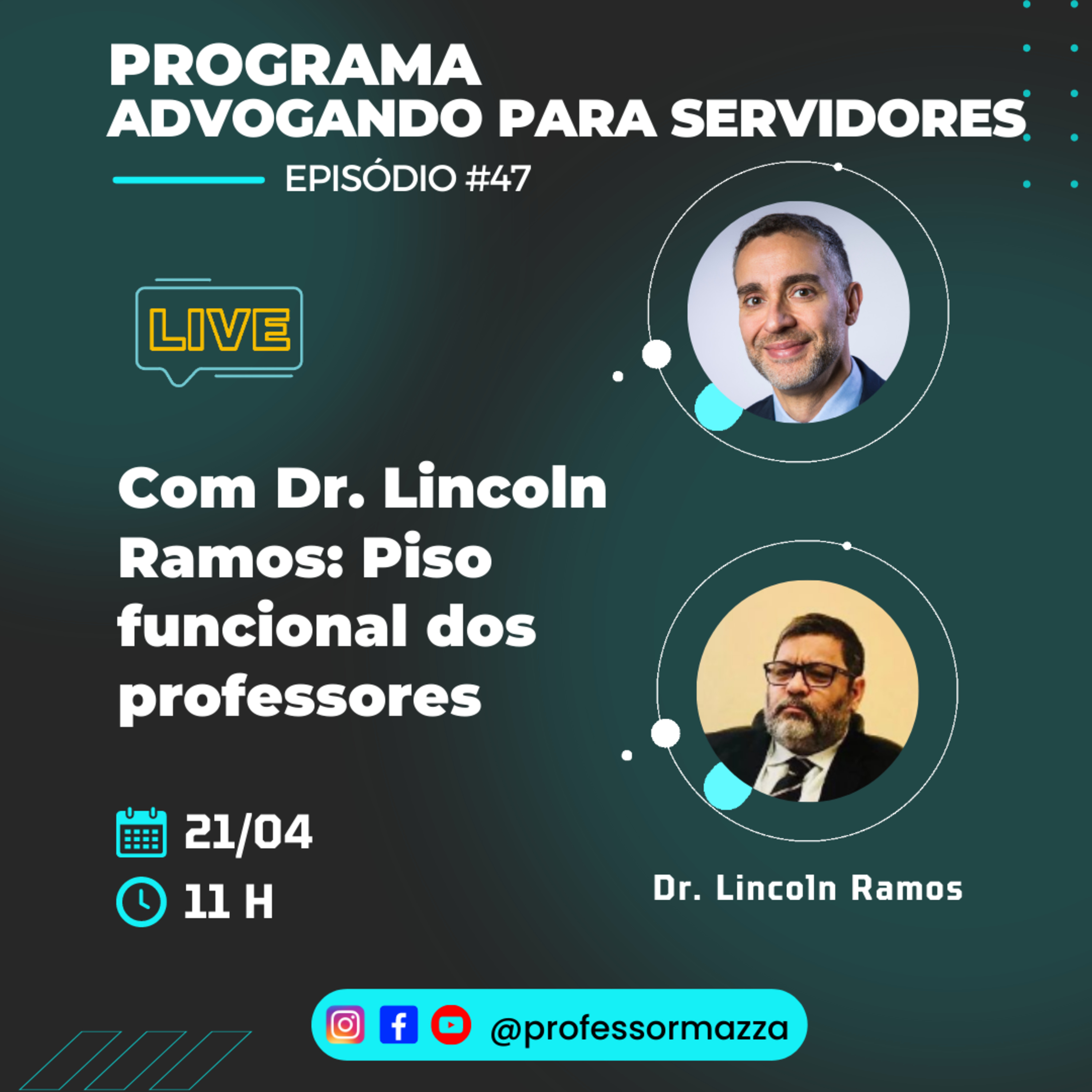 Nesse episódio vamos falar com o Dr. Lincoln Ramos sobre o piso nacional dos professores da rede pública