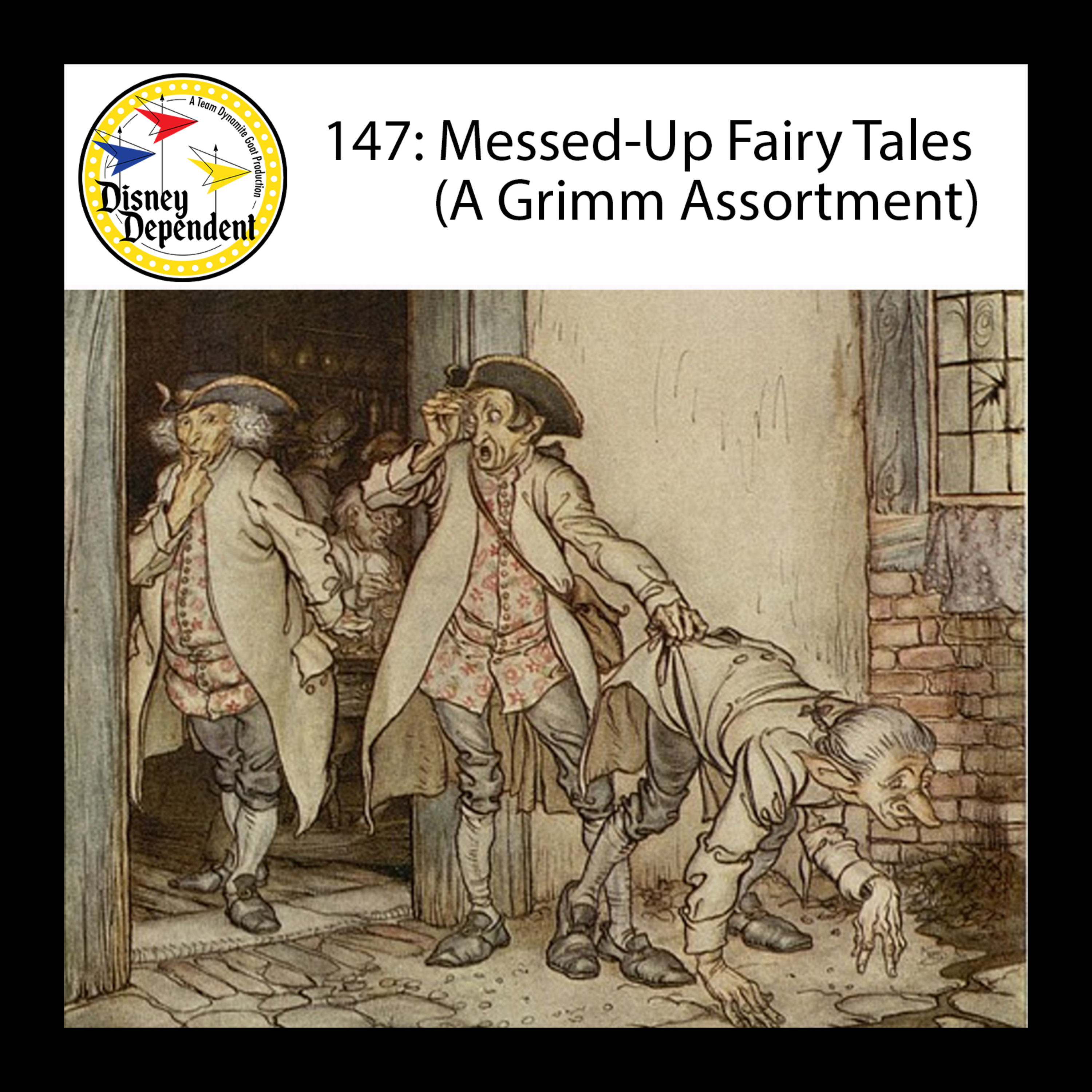 The valiant return of Messed-Up Fairy Tales brings three deliciously insane and confusing yarns from the Brothers Grimm: a walking, talking sausage that cooks food by using its own juices, a girl that wears catskin in order to avoid marrying her father (for a while), and three masochistic idiots that like to play God with their own bodies. Enjoy!