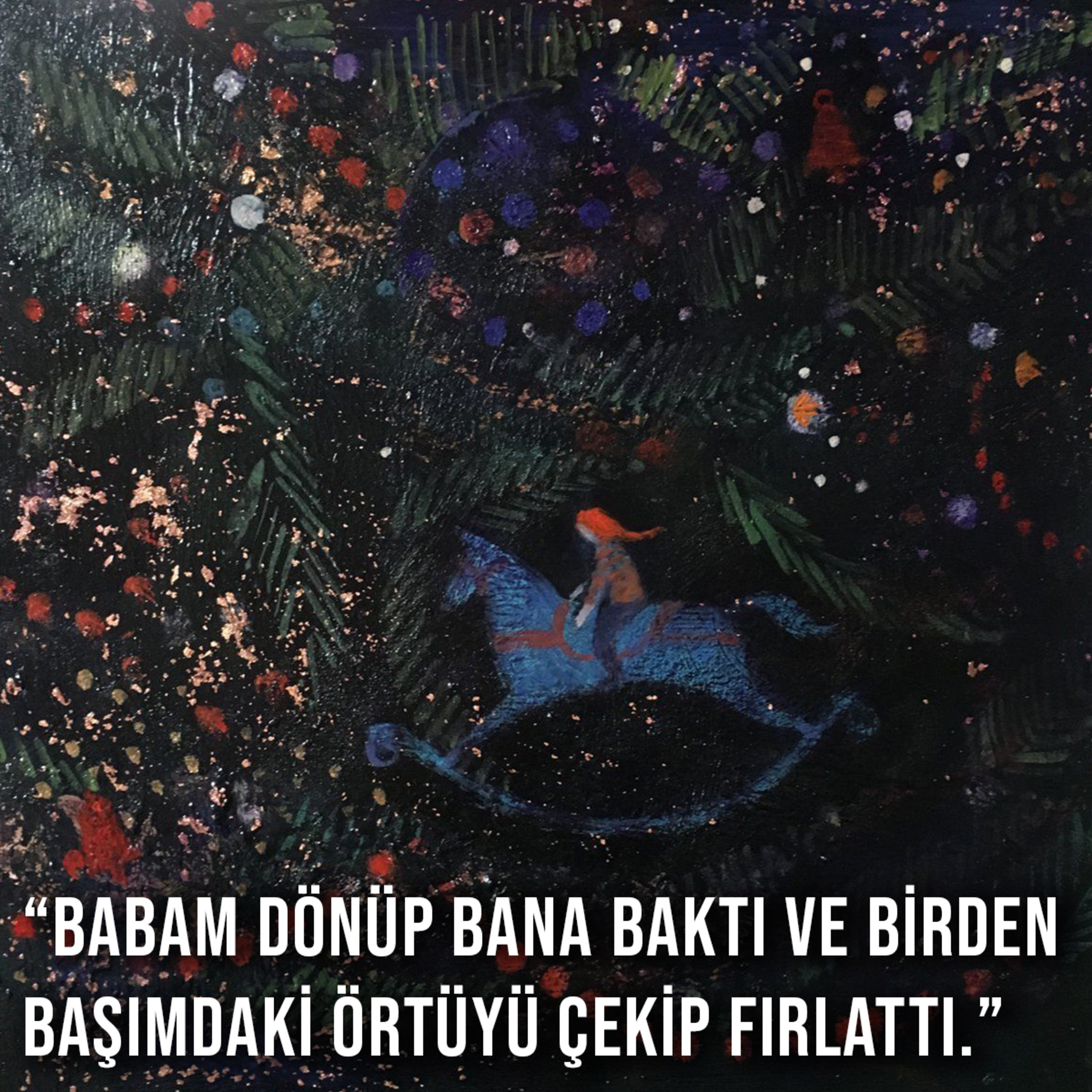 Kapanalı 1 hafta olmuştu. Ailecek dışarı çıkacaktık. Büyük bir hevesle üstümü giyip başımı örtmüştüm. Baya bir yol kat ettikten sonra babam dönüp bana baktı. Beni süzdü ve birden başımdaki örtüyü çekip fırlattı. 11 yaşındaydım. Daha 11 yaşındaydım. Bana “Böyle örteceksen hiç örtme” demişti. O gün annemle babam çok fazla tartıştı. Eve geldiğimde ve artık örtmeyeceğimi söylediğimde annem bana destek vermişti. Ama babam pişkin pişkin gelip gönlümü almaya çalıştı. Affetmiştim onu. Bana hayatımın travmasını yaşatmasına rağmen affetmiştim. Meğer başımı açmamam içinmiş, ne safmışım. Özrüne inanıp başımı açmadım, bir daha yapmaz dedim; çocuk aklı işte. Yaşım büyüdükçe kavgalar arttı. Pantolon yasakları, başımı örterken yaptığım topuza kadar müdahaleler… Kapılar kırılıyor, bağırış çağırışlar hiç dinmiyordu.