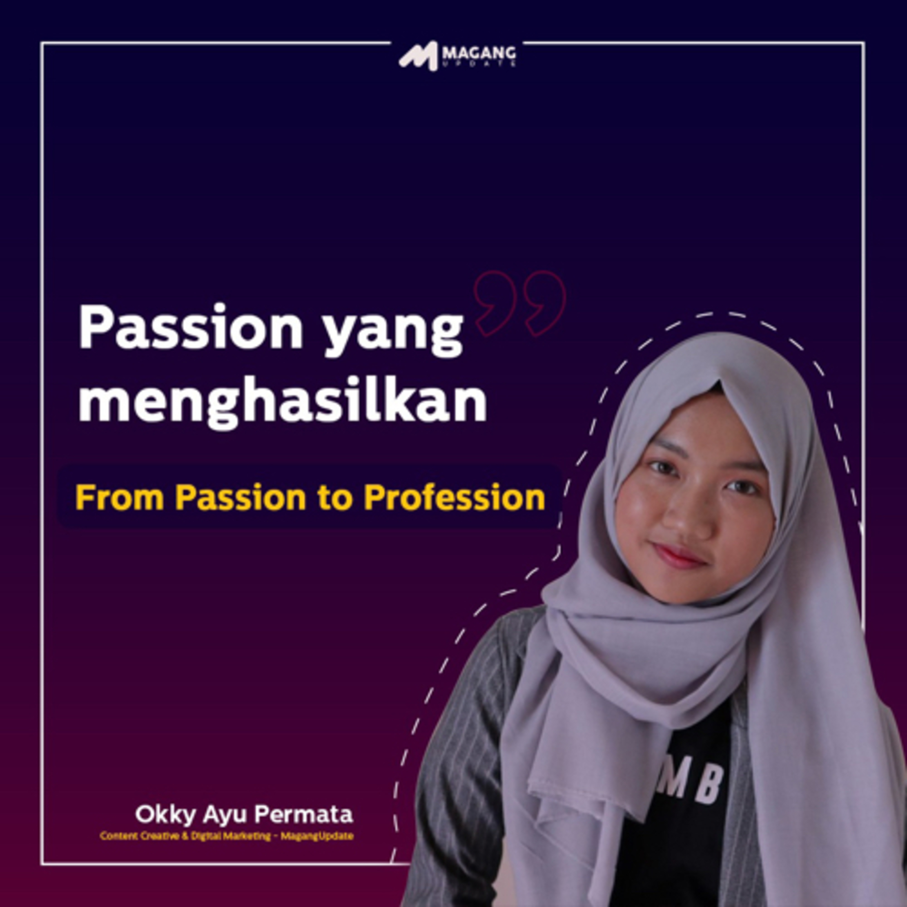 Halo! Selamat datang di Podcast Magang Update✨ Di episode pertama ini kita bakalan ngobrol bareng Okky Ayu Permata, YouTuber dan juga Intern di MagangUpdate, terkait pengembangan passion!😉