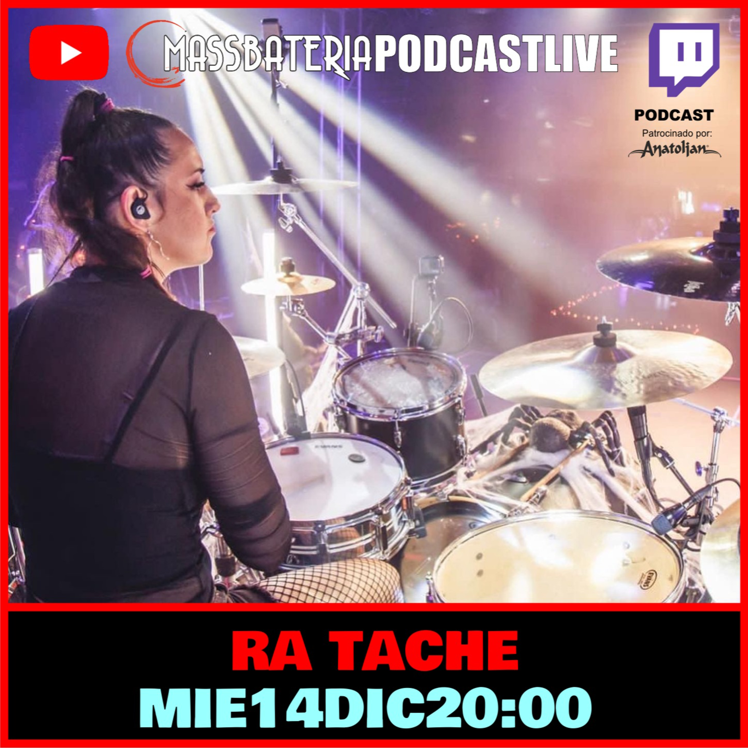 Programón el que tenemos este miércoles!! Nos visita, nada más y nada menos. que Ra Tache, uno de los máximos exponentes a la batería de la más rabiosa actualidad. Baterista, arreglista, compositora, productora... Endorser de Pearl Drums y Zildjian. Mogollón de seguidores en Instagram...que más quieres? Ah si!! Es majísima y super simpática!! No te lo pierdas. Este miércoles, pero a las 20 horas. Un poco antes de lo habitual