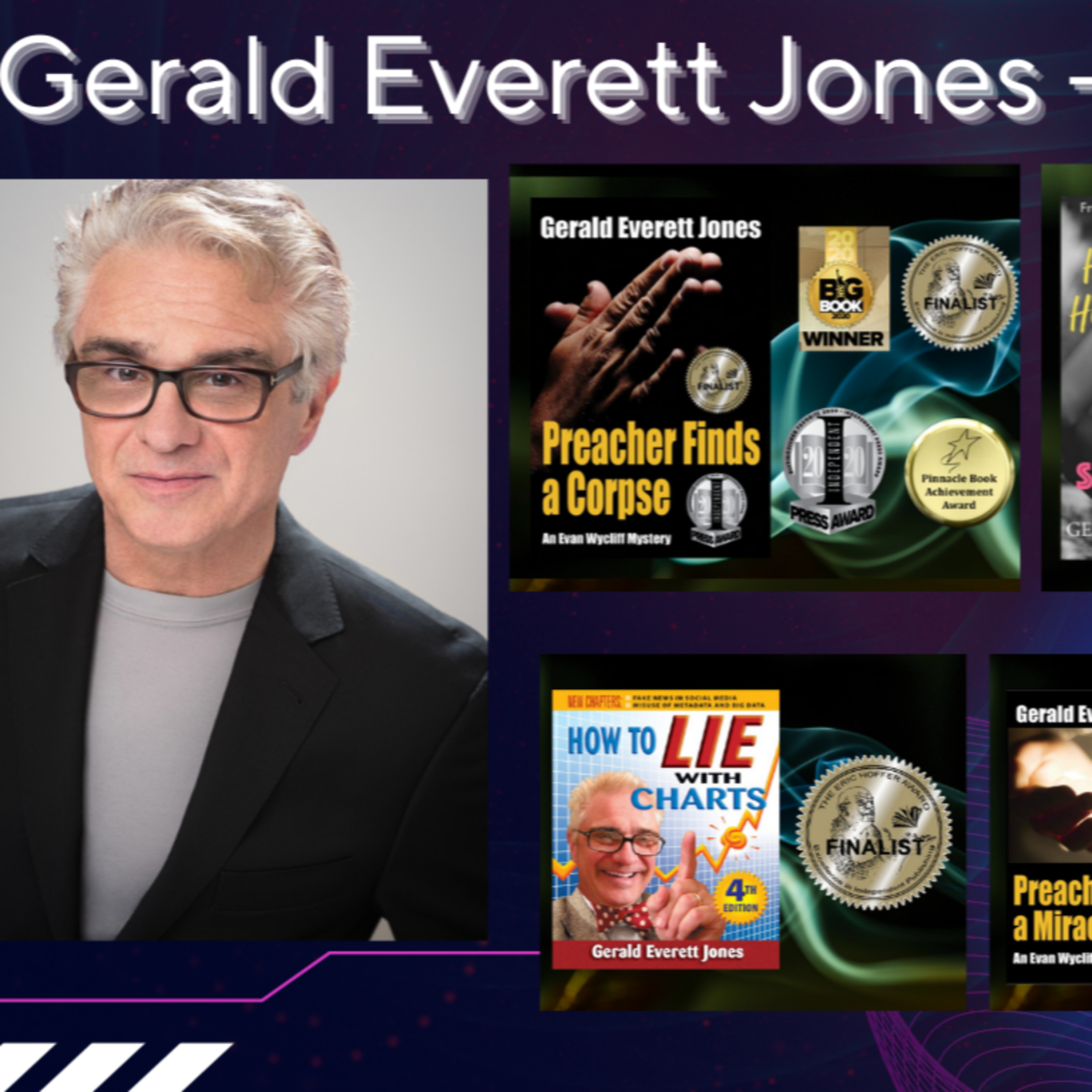 His website has links to his books and how you can get one of his novels for free. https://geraldeverettjones.com/