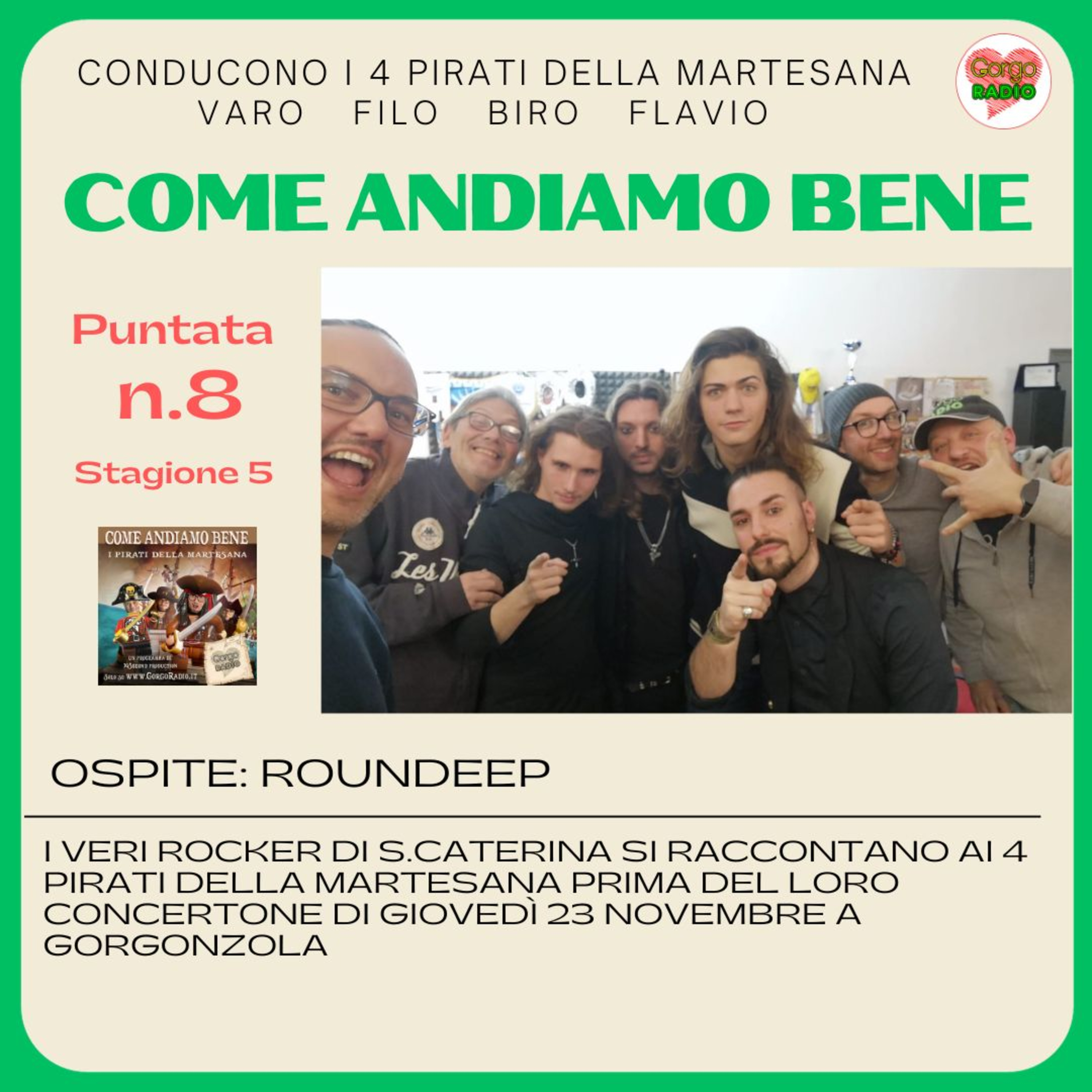 Puntata con I Roundeep, gruppo rock che si esibirà giovedi 22 novembre in una delle serate di apertura della fiera di S.Caterina.