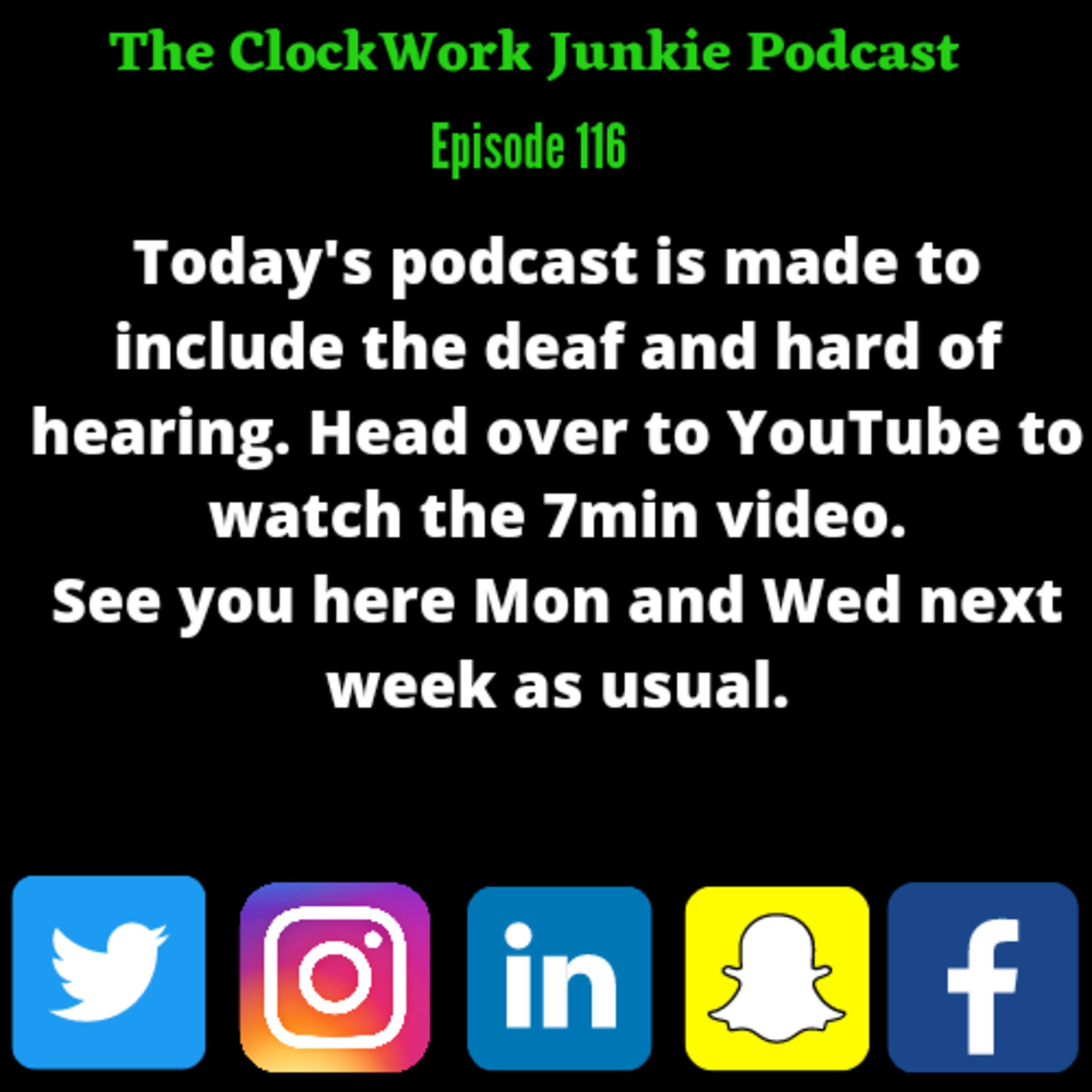 Today's podcast is only on YouTube and has no sound excluding the intro. It is for everyone but it was made with people who are deaf or hard of hearing in mind. Head over to YouTube now to watch today's 7min video. See you next Monday and Wednesday as usual. Thank you, Mark