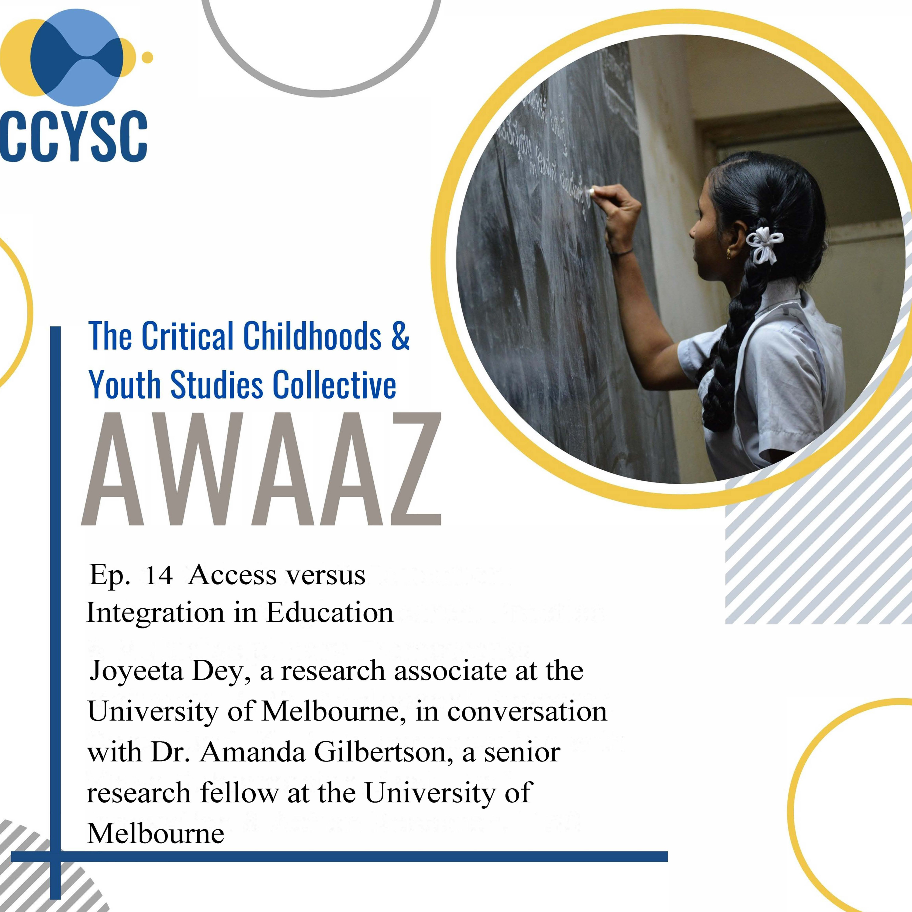 In this episode of CCYSC Awaaz, Joyeeta Dey and Dr. Amanda Gilbertson discuss their research on desegregation and the common school system in India, specifically in Lucknow. They analyze how a desegregation policy gets translated into an access policy by middle-class actors at various levels - from the state officials to public intellectuals to school leadership to teachers - and read against the grain of how the policy is interpreted by the poor families who avail of it.