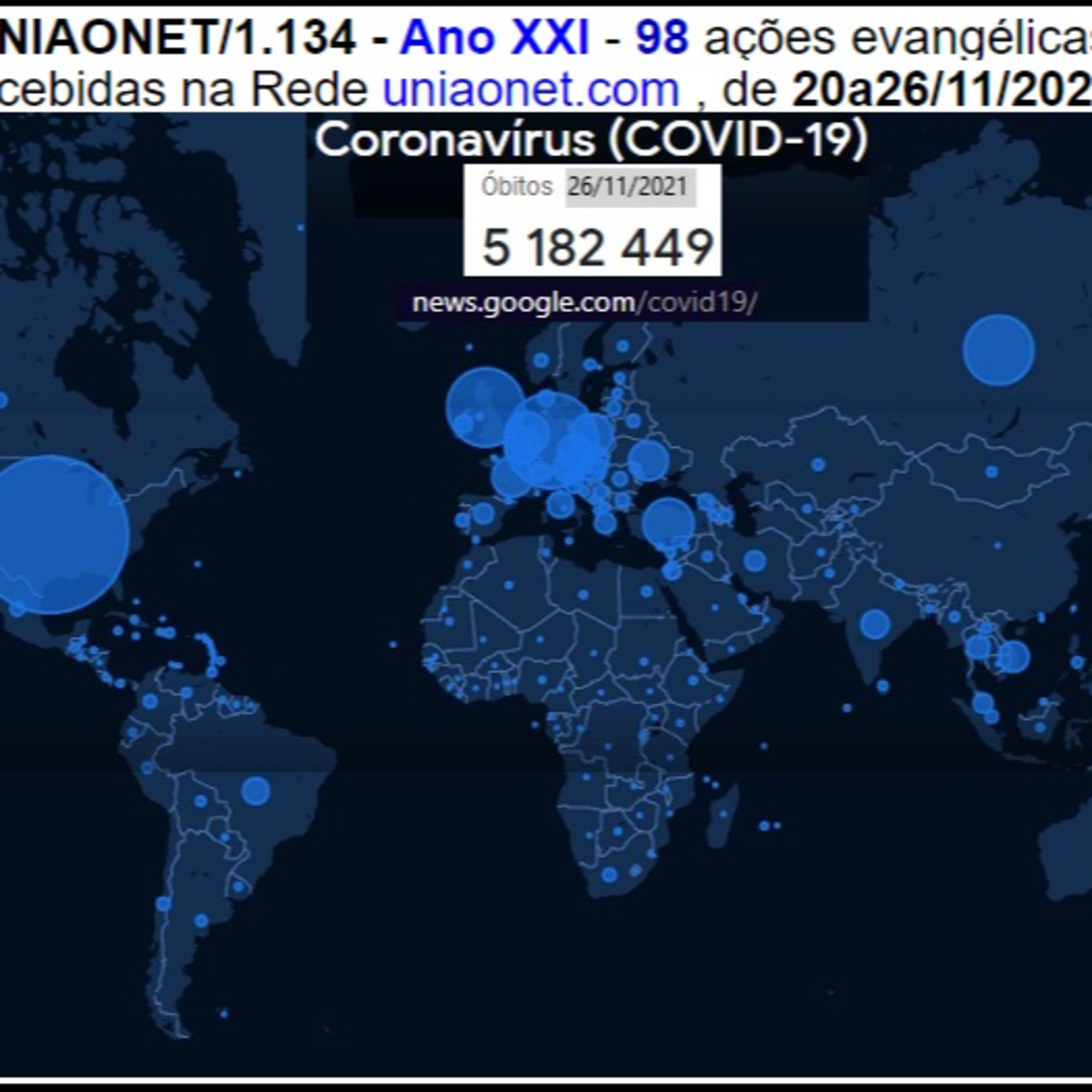 Já enviamos via uniaonet@gmail.com o: UNIAONET/1.134 - Ano XXI - 98 ações evangélicas recebidas na Rede www.uniaonet.com , de 20a26/11/2021