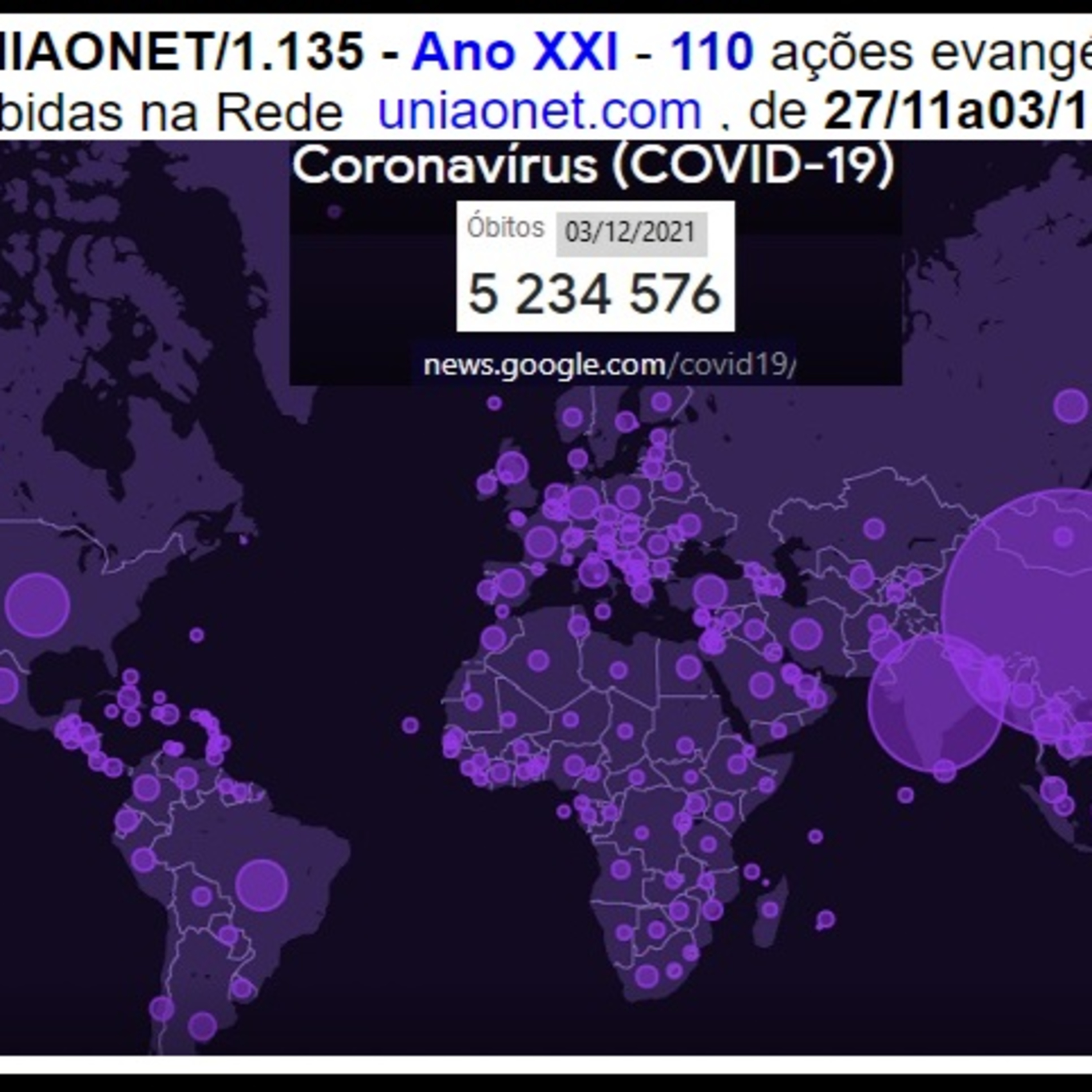 Já enviamos via uniaonet@gmail.com o: UNIAONET/1.135 - Ano XXI - 110 ações evangélicas recebidas na Rede www.uniaonet.com , de 27/11a03/12/2021
