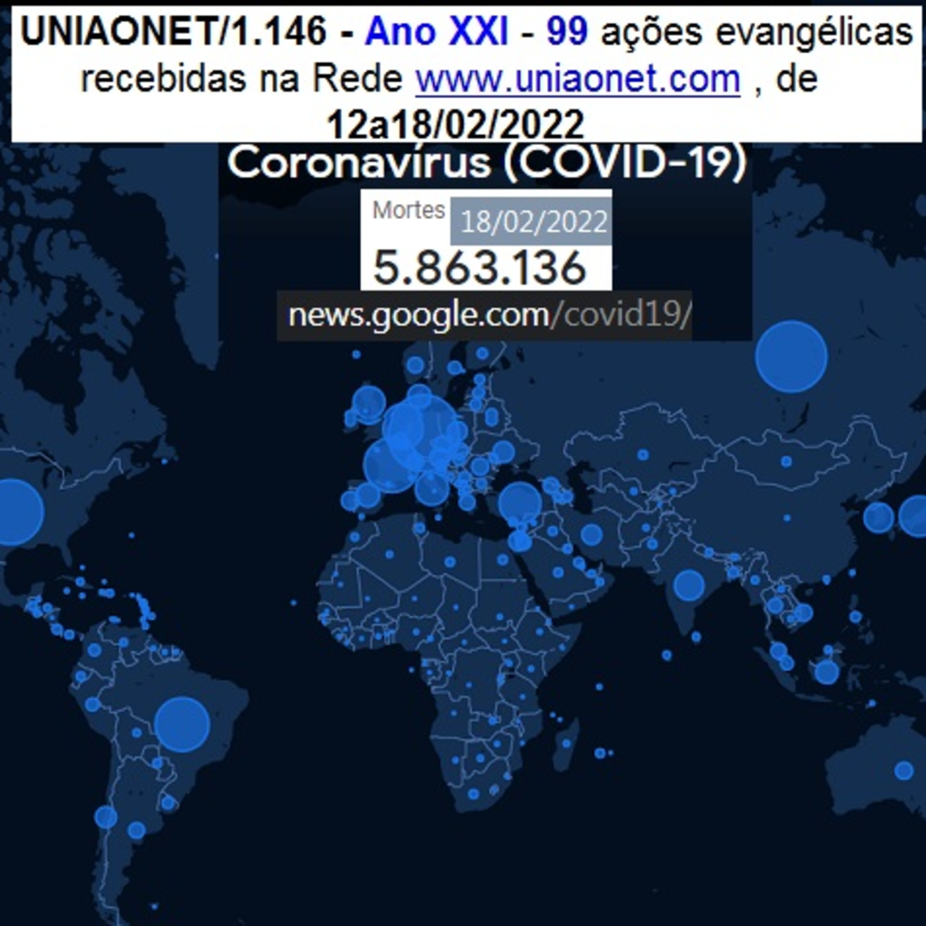 Já enviamos via uniaonet@gmail.com o: UNIAONET/1.146 - Ano XXI - 99 ações evangélicas recebidas na Rede www.uniaonet.com , de 12a18/02/2022