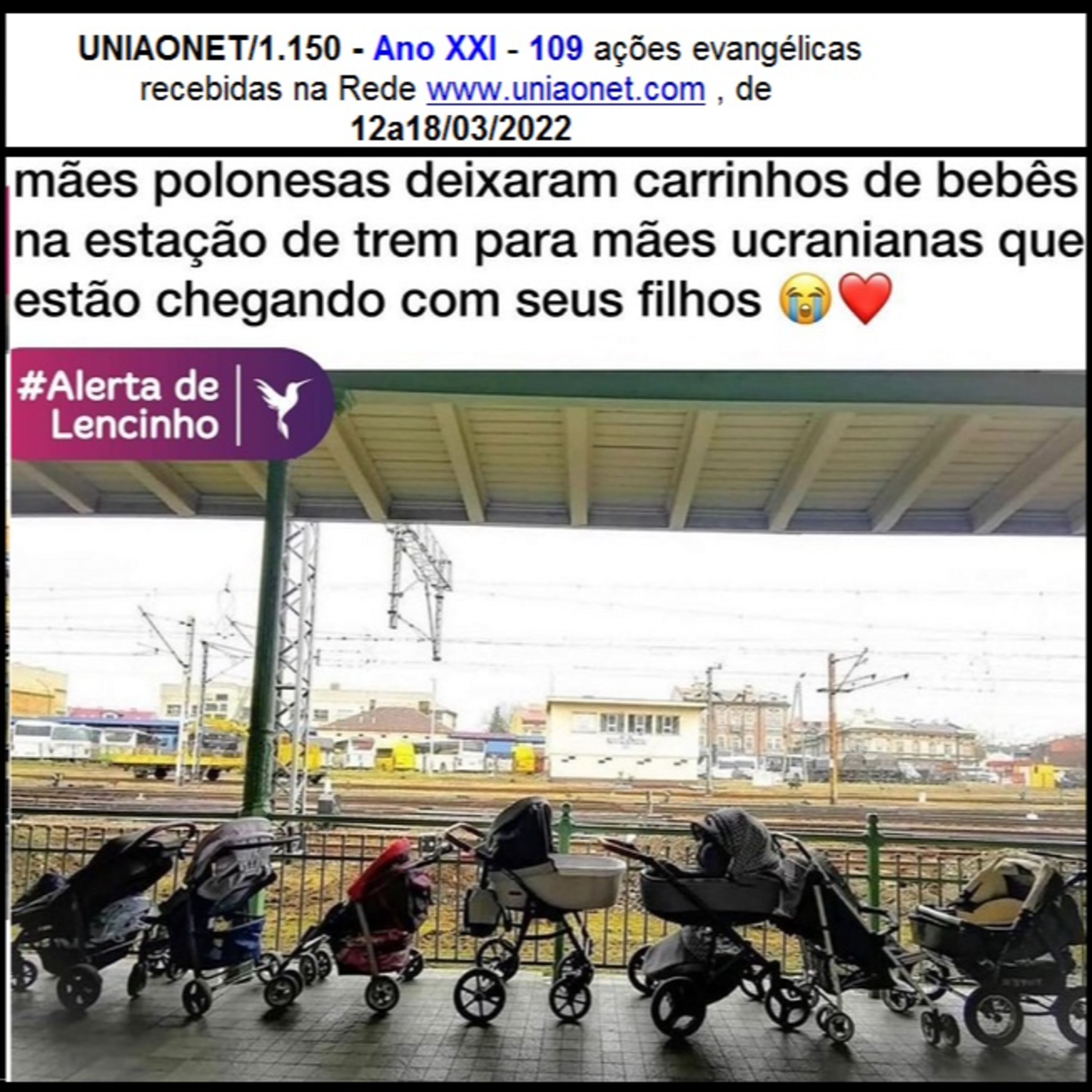 Já enviamos via uniaonet@gmail.com o: UNIAONET/1.150 - Ano XXI - 109 ações evangélicas recebidas na Rede www.uniaonet.com , de 12a18/03/2022