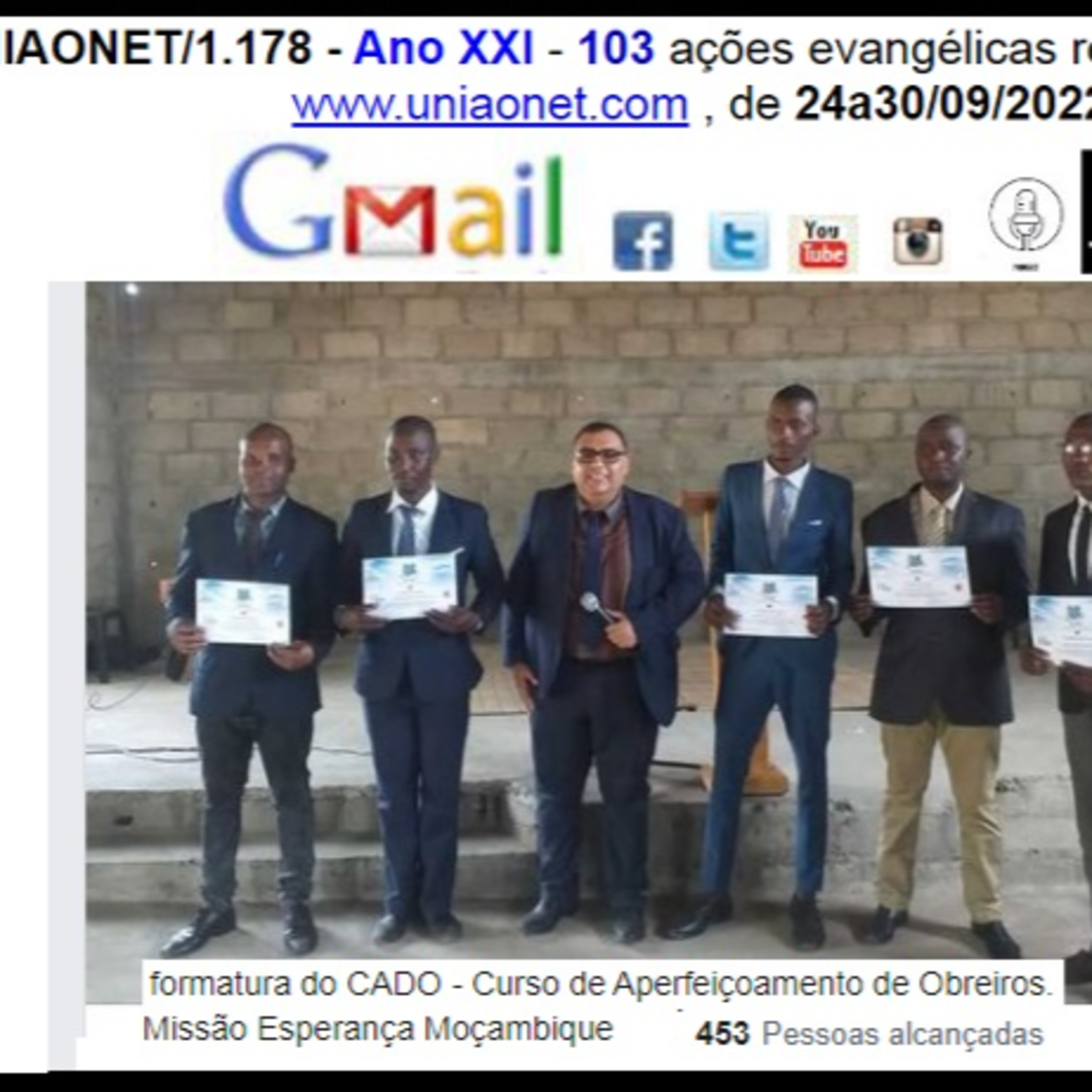 UNIAONET/1.178 - Ano XXI - 103 ações evangélicas recebidas nas #redesSociais #uniaonet , de 24a30/09/2022