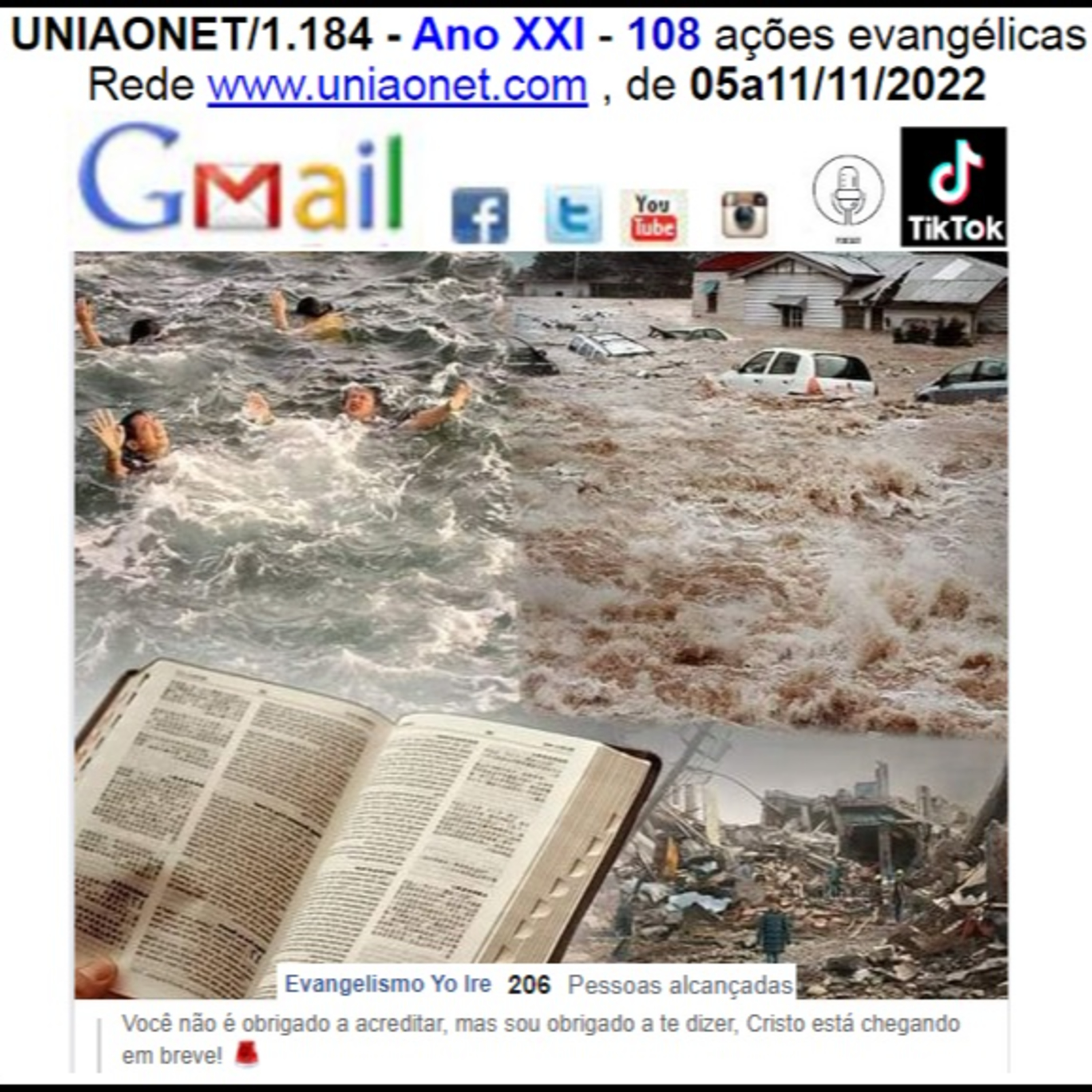 UNIAONET/1.184 - Ano XXI - 108 ações evangélicas recebidas na Rede www.uniaonet.com , de 05a11/11/2022