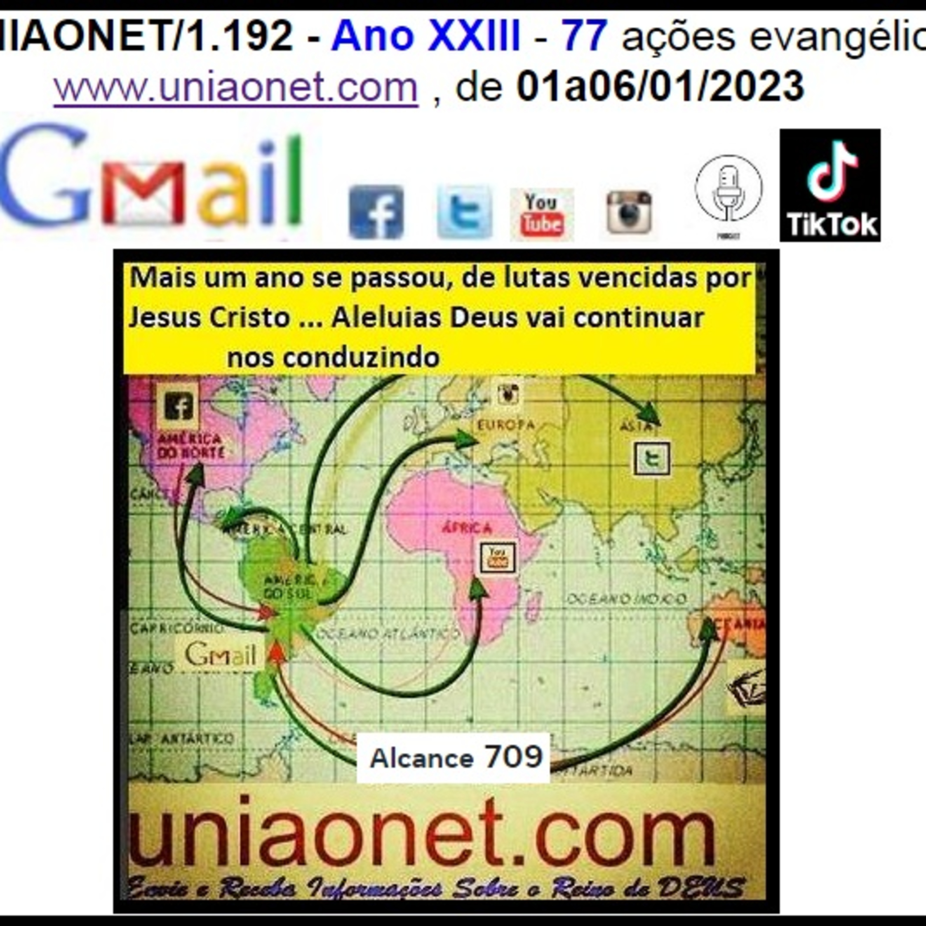 UNIAONET/1.192 - Ano XXIII - 77 ações evangélicas recebidas na Rede www.uniaonet.com , de 01a06/01/2023