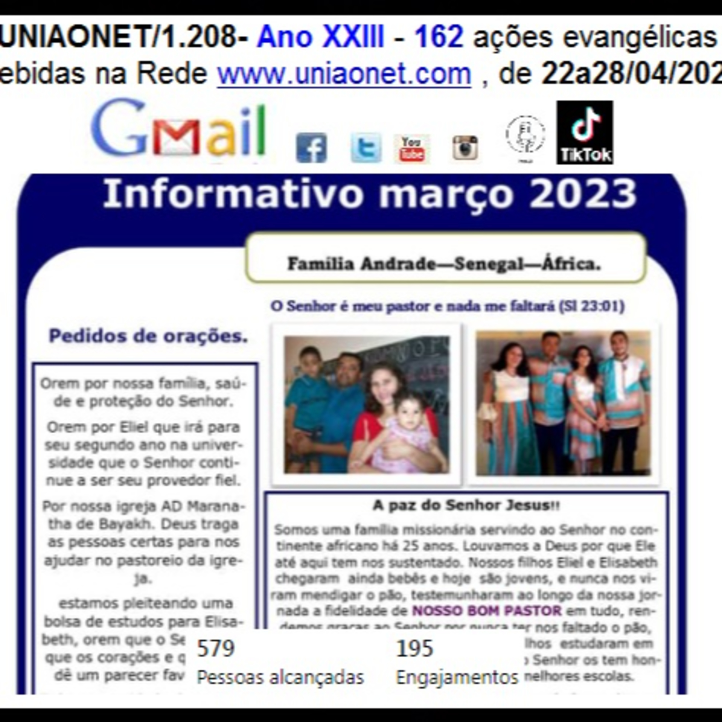 uniaonet1208abr22a28 - Ano XXIII - 162 #açõesEvangélicas recebidas na Rede #uniaonet