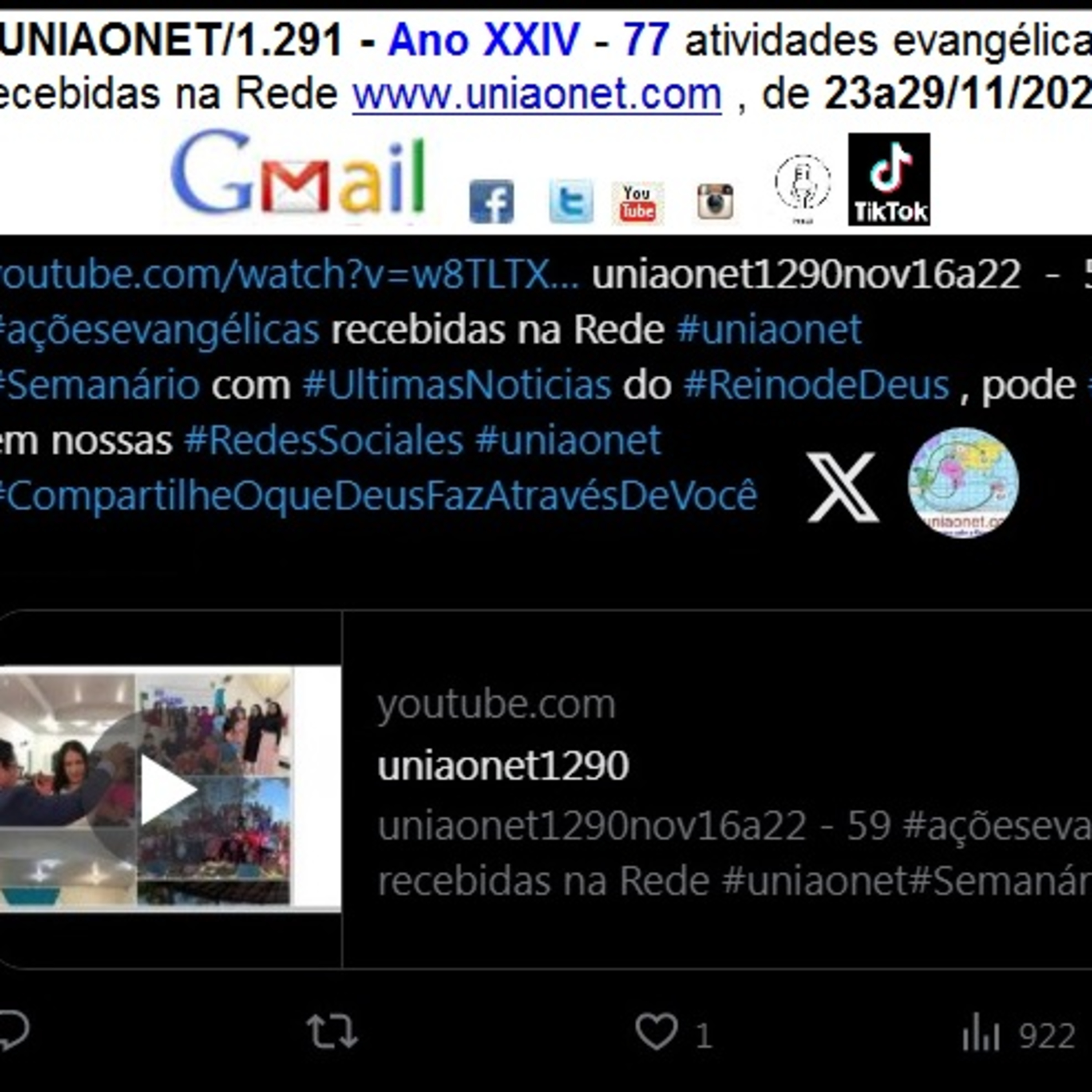 uniaonet1291nov23a29 - 77 #açõesevangélicas recebidas na Rede #uniaonet