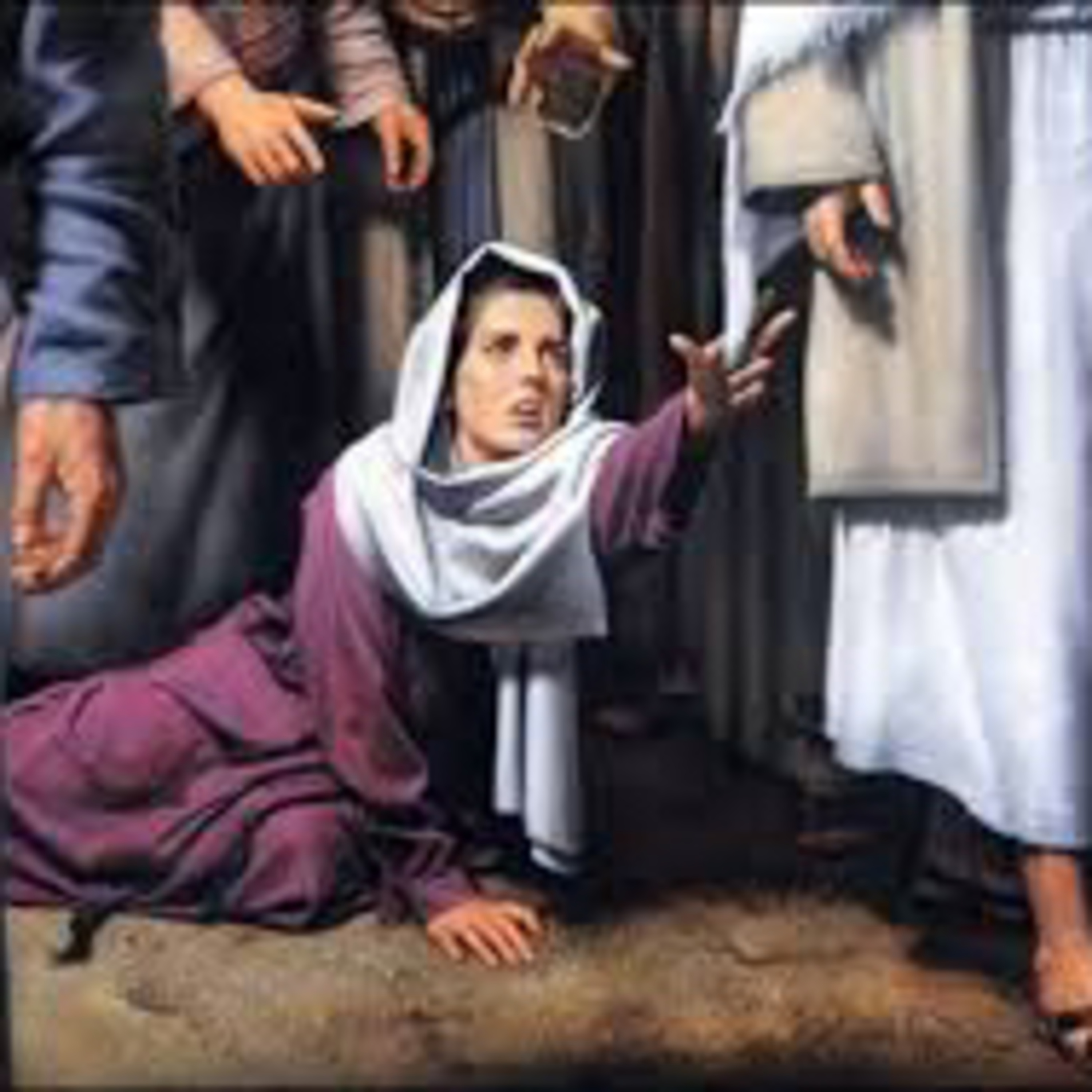 pensando: "Con sólo tocar su manto, quedaré curada".