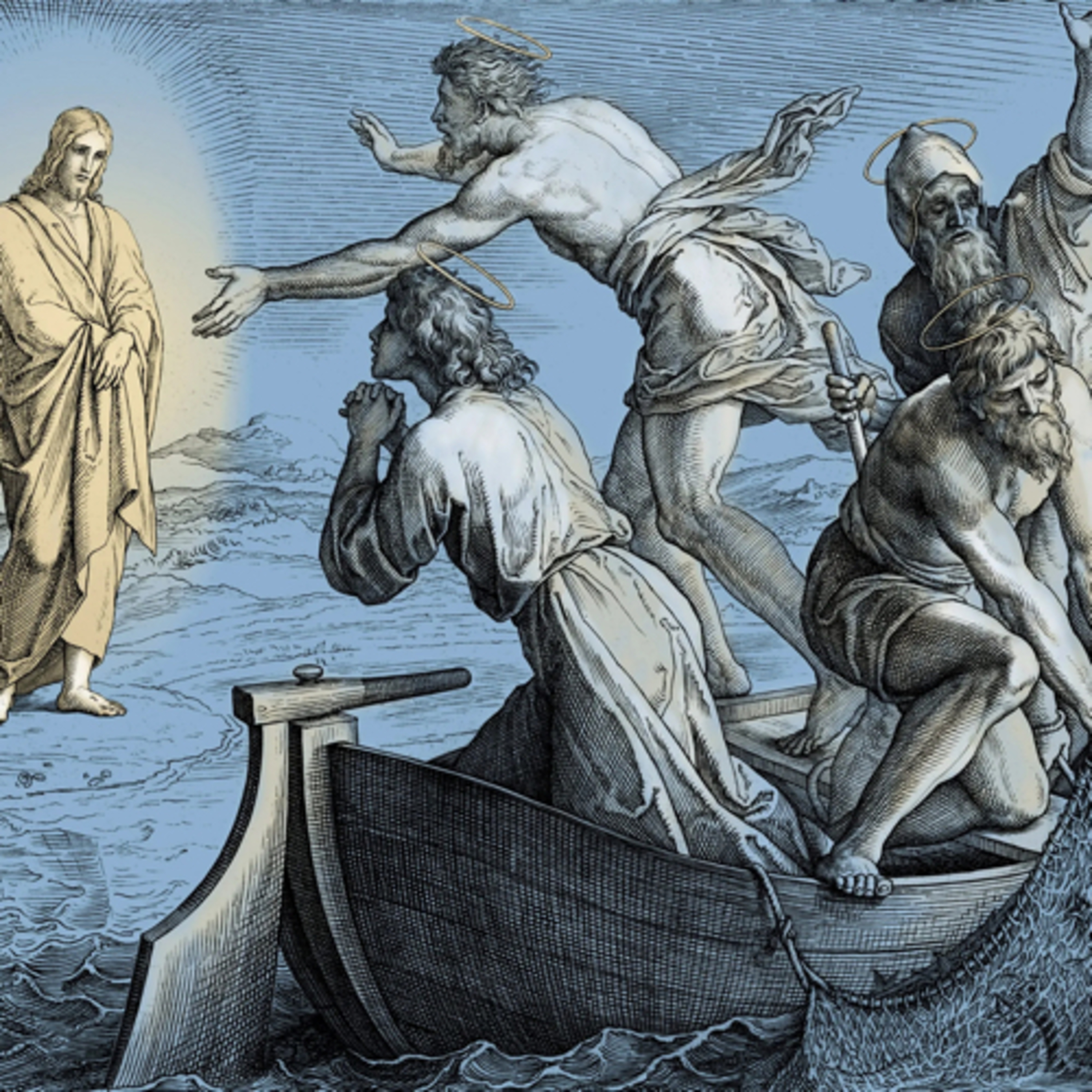 Simón Pedro subió a la barca y sacó la red a tierra, llena de peces grandes: eran ciento cincuenta y tres y, a pesar de ser tantos, la red no se rompió.