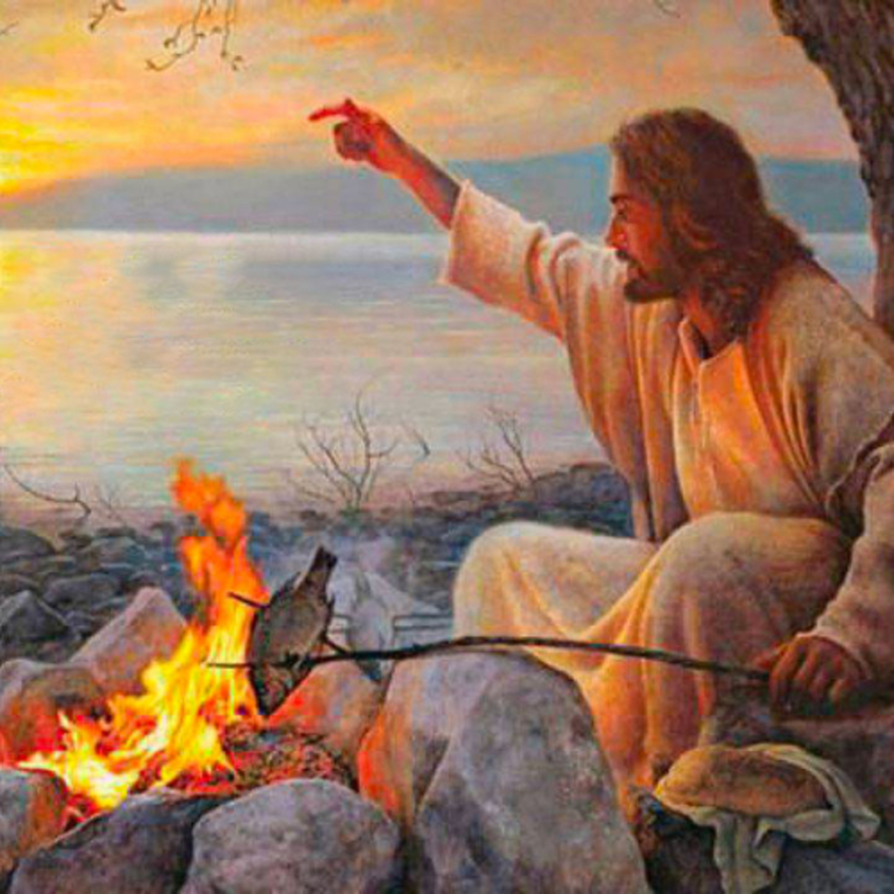 Al bajar a tierra vieron que había fuego preparado, un pescado sobre las brasas y pan.