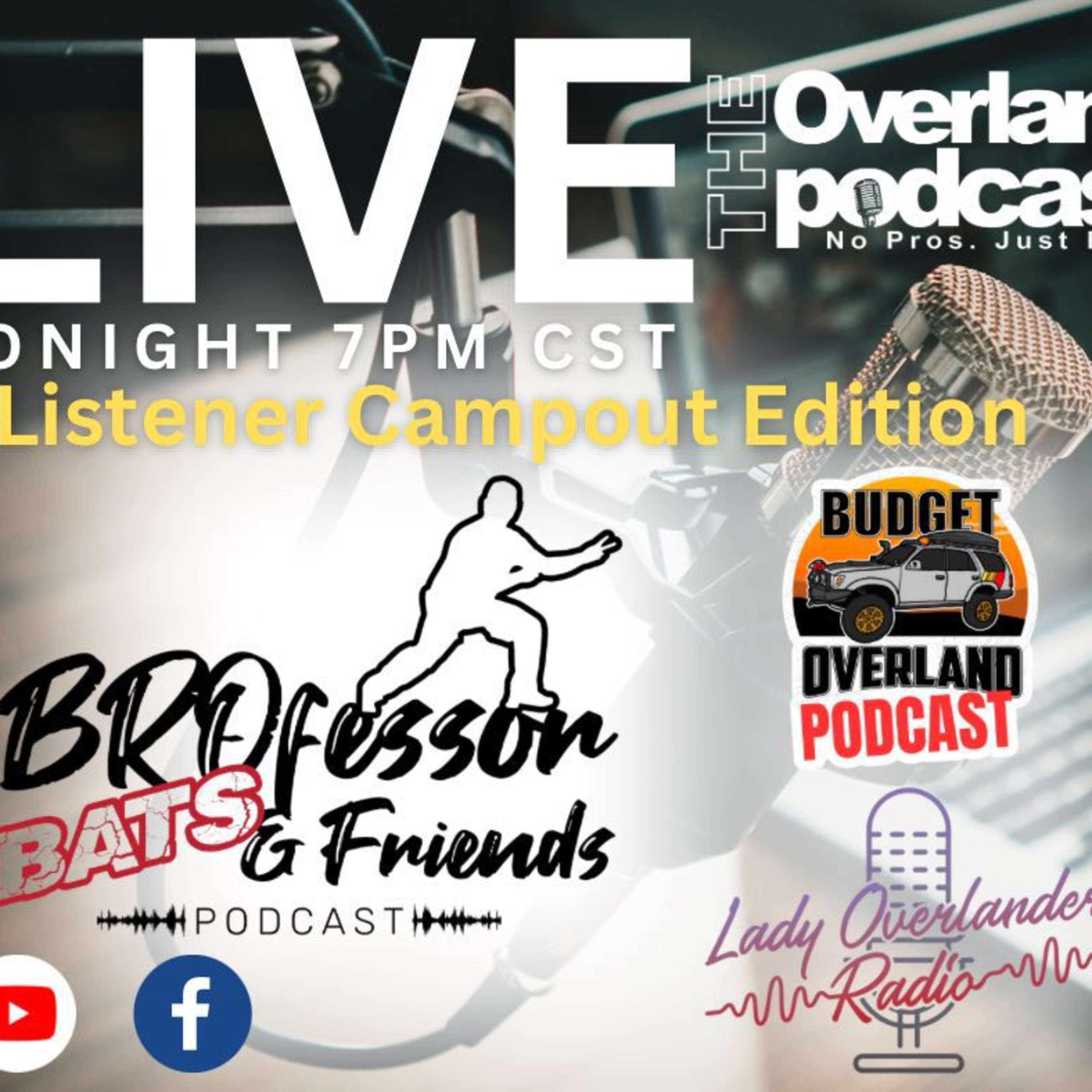 Tony hosts a great show with Benji from Budget Overland Podcast and Misti and Arla from Lady Overlander Radio talking about this weekends campout and plenty of other relevant and irrelevant information.