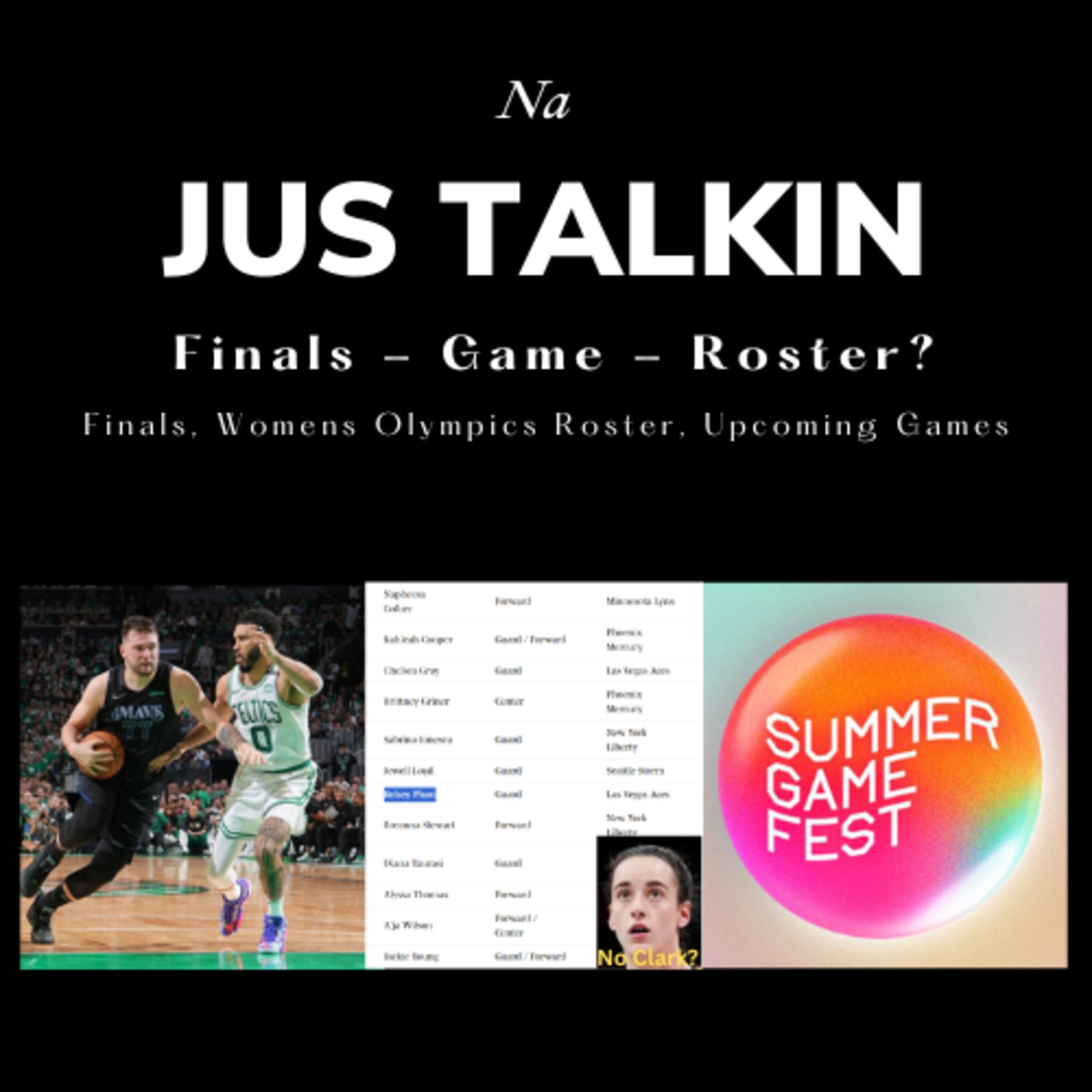 HEYO, Na jus talkin about NBA finals, Celtics vs Mavs game 1 and 2, the Womans us basketball Olympics roster (why not Caitlyn Clark?), and lastly ALL THE GAMES COMING IN 2024 we talking about!!!!!
