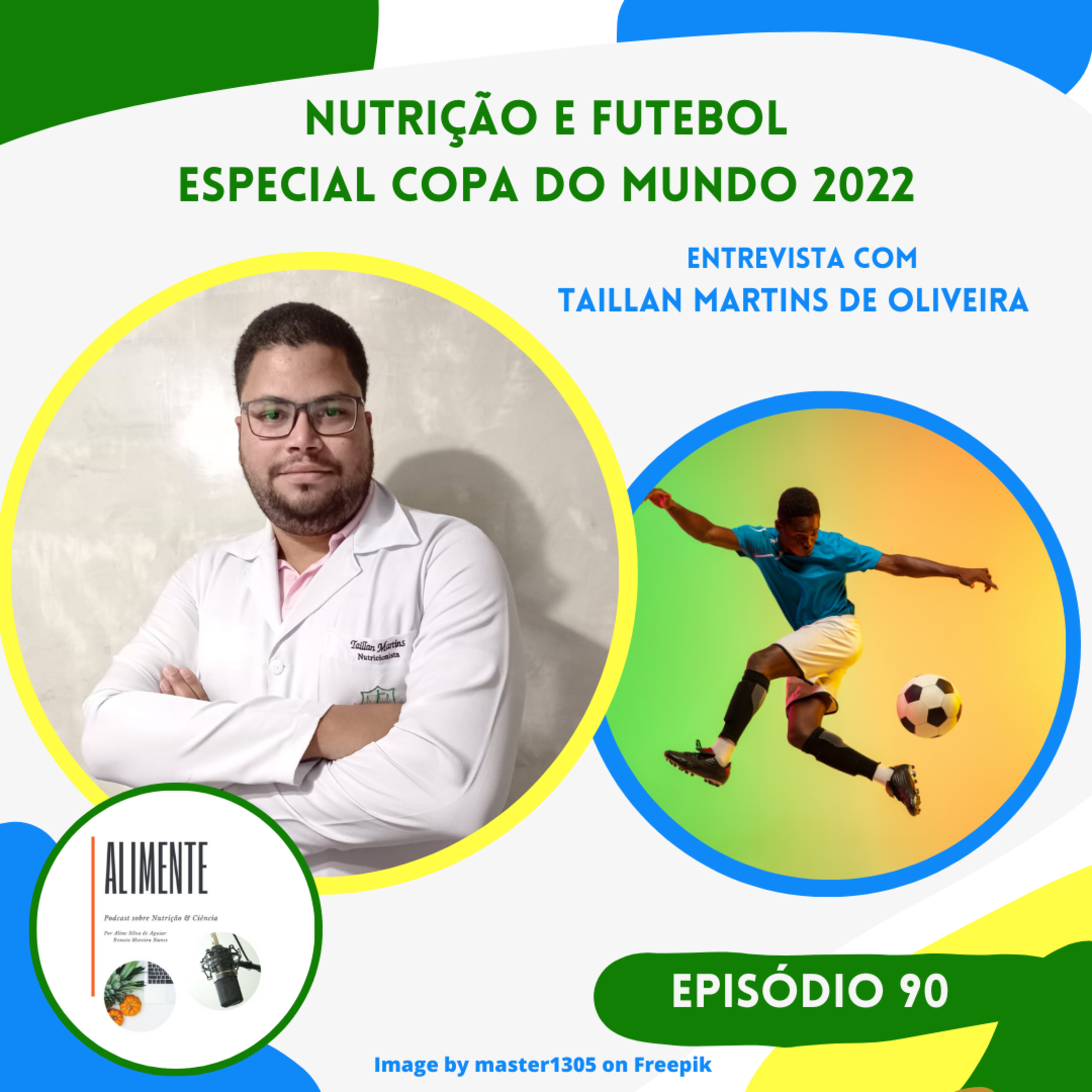 Em comemoração a Copa do Mundo 2022, o Alimente lança um episódio especial sobre Nutrição e Futebol. Para conversar sobre o assunto trazemos Taillan Martins, nutricionista e doutorando na Universidade Federal do Rio de Janeiro. Nessa conversa compartilhamos sobre alguns pontos importantes na nutrição do atleta e como eles podem impactar no seu desempenho físico.