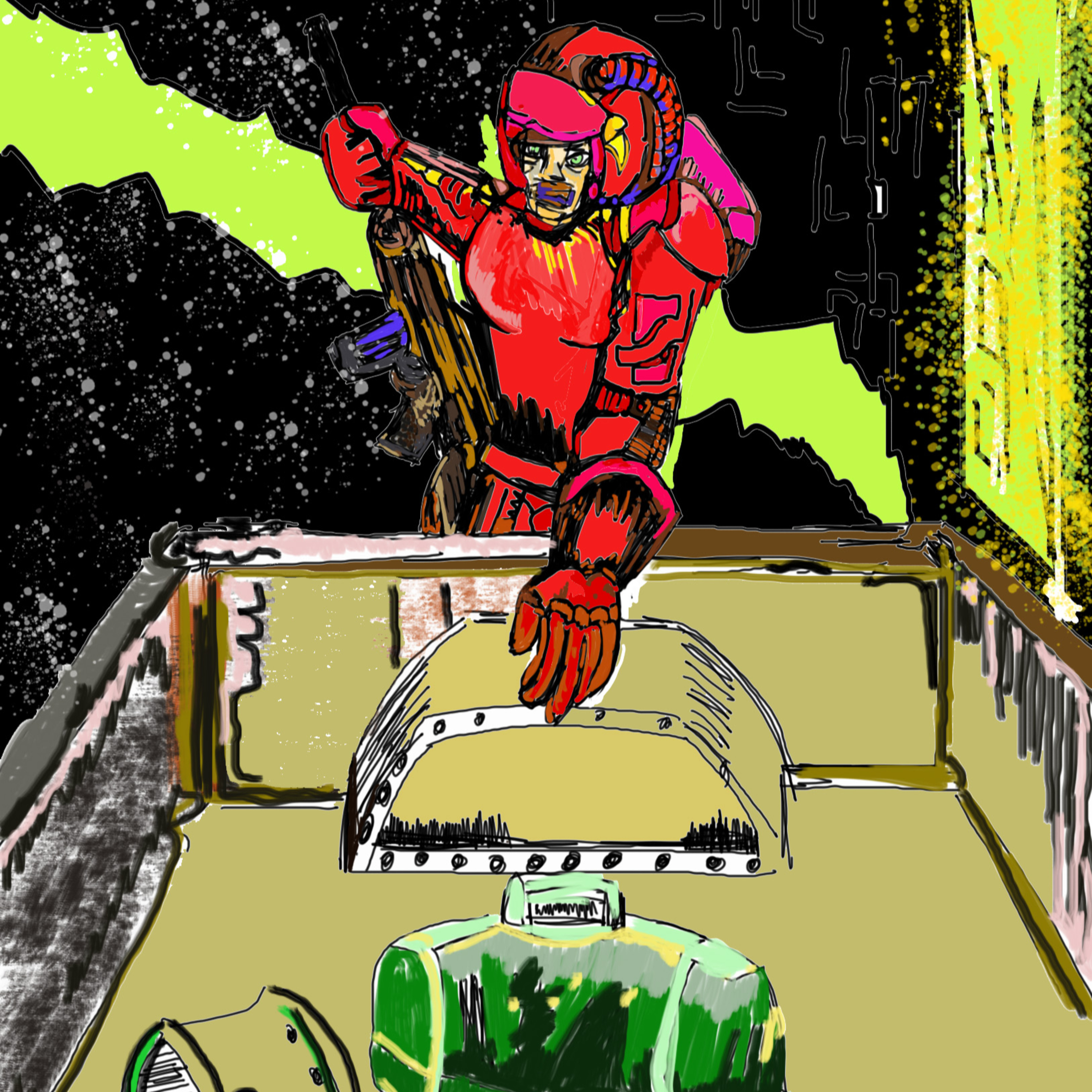 Mettle arranges for the Mayor to make his monthly payment to keep our heroes off his back. He demands Jimmie Mac be the currier. The North Elmview meet does not go as planned as Ultra Rosa shows up and says she needs the $400K and Mettle reluctantly agrees to let her have it, in the interest of avoiding bloodshed. This is the Olympian’s first encounter with the violent vigilante.