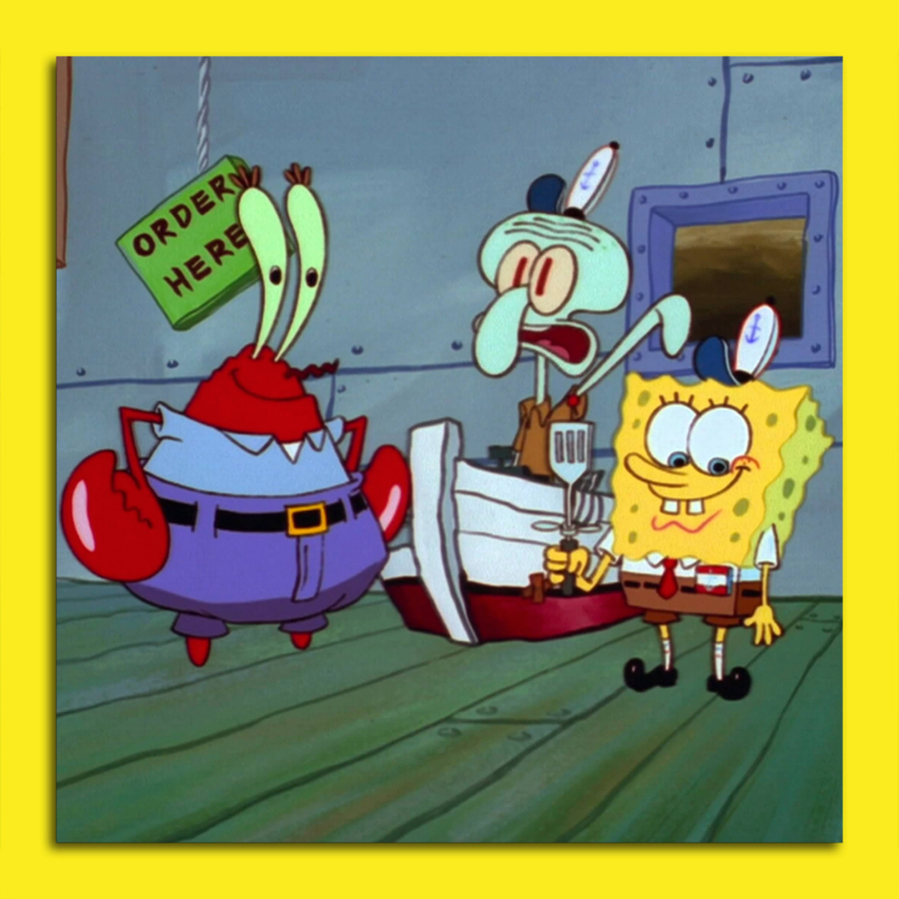 SpongeBob finally applies for a job at the Krusty Krab.