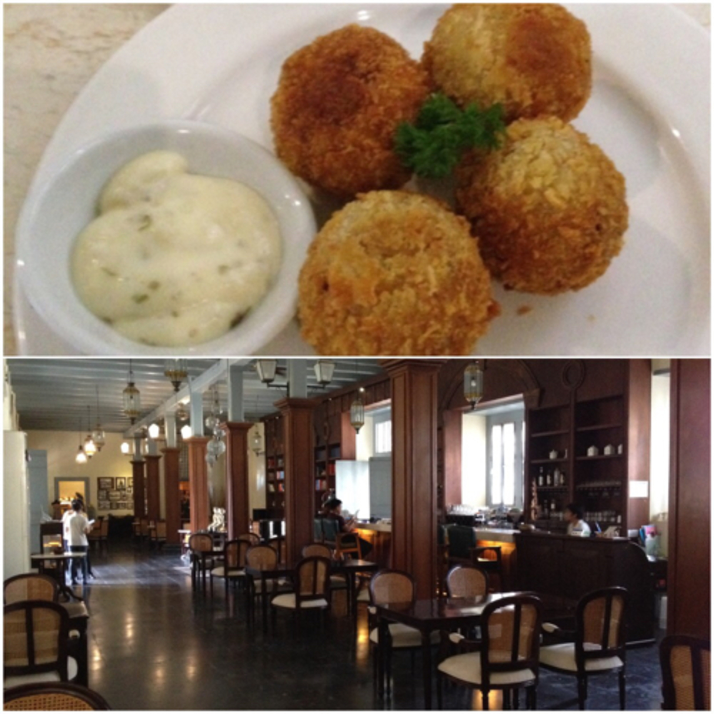 写真: フレデブルク要塞内のカフェ インディスチェコーヒー / Indische Koffie とオランダのコロッケ風揚げ物 ビターバレン / Bitterballen。