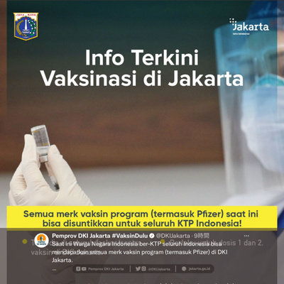 ジャカルタ州政府の発表(Twitter) https://twitter.com/dkijakarta/status/1446676667938729984?s=21