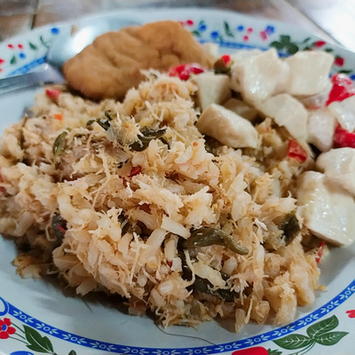 写真: ジャワの田舎料理 ココナツの混ぜご飯 ナシメゴノ Nasi megono
