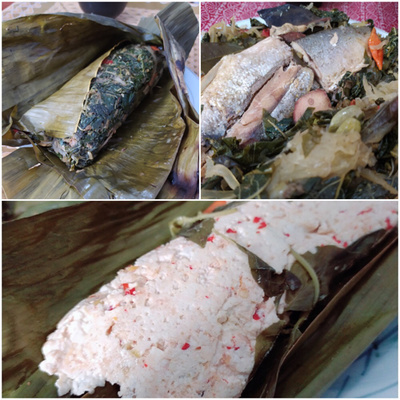 写真: Pepes ikan(tahu)ペペス イカン(タフ): 魚(豆腐)と野菜・スパイスのバナナの葉包み蒸し