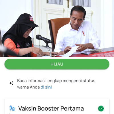 サムネ画像:官邸で自身の有権者データの照合に立ち会う大統領(イ内閣官房のホームページより)& SATUSEHATアプリの画面