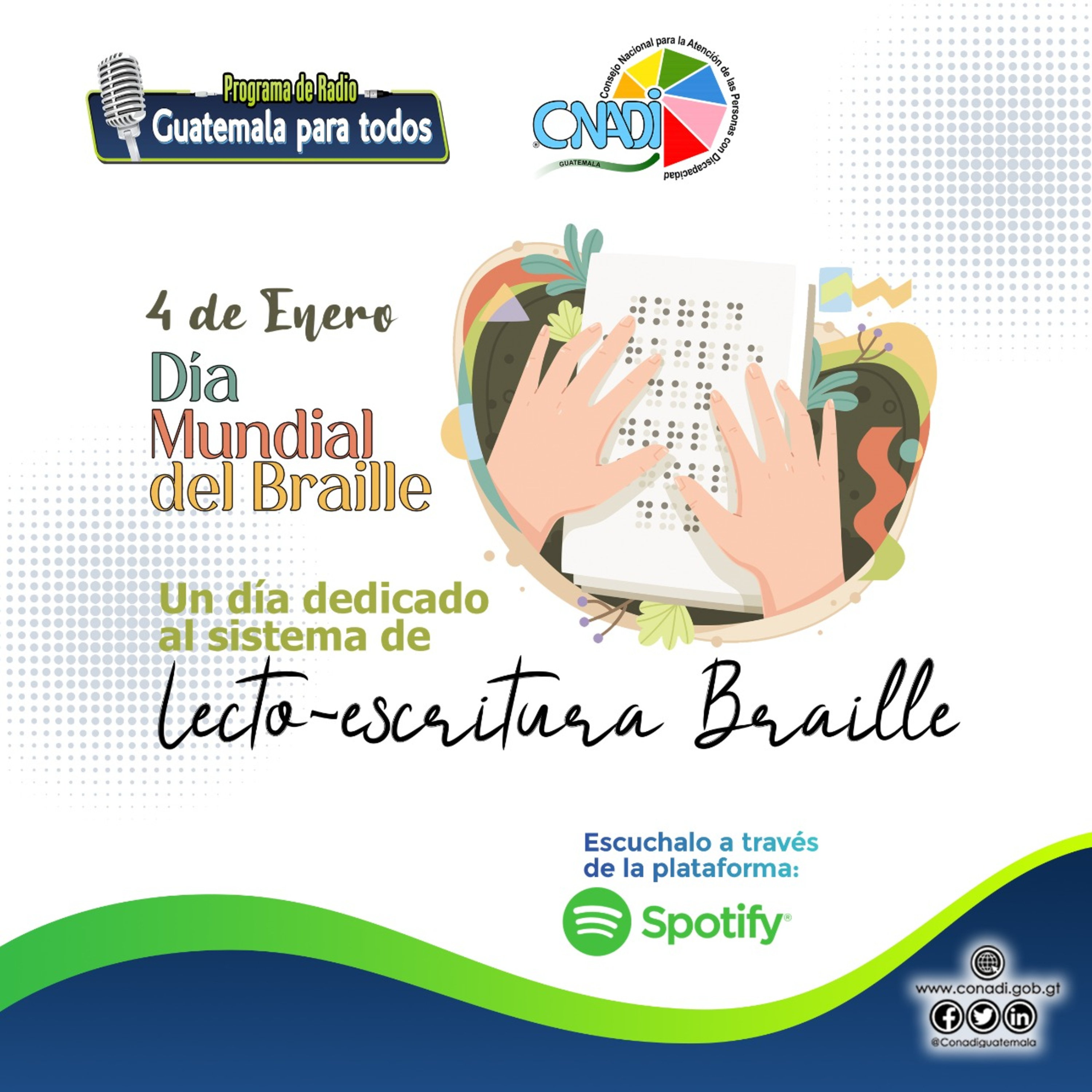 Programa Guatemala para Todos correspondiente a la fecha, abordando el tema "Un día dedicado al sistema de lecto escritura braille".