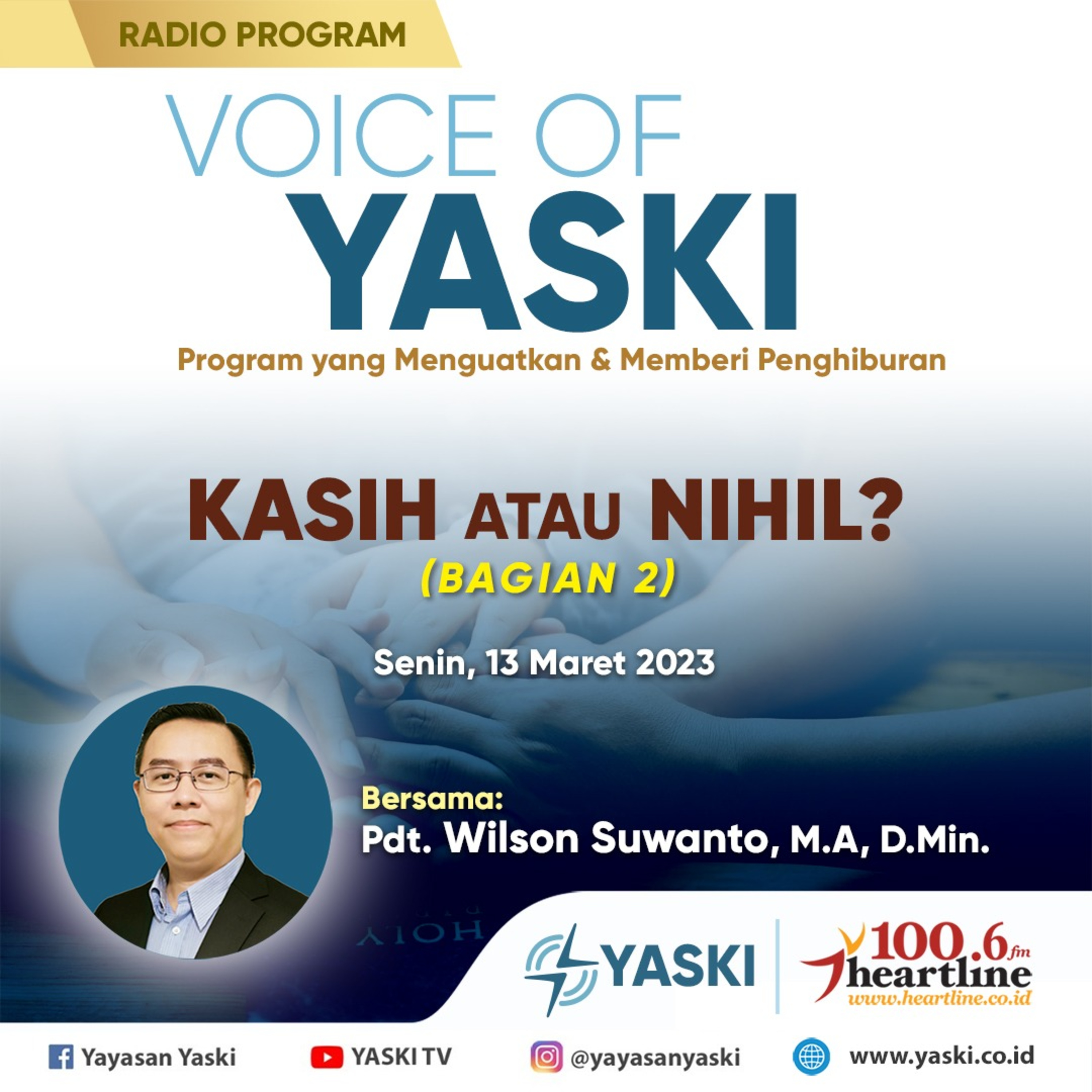 Salam sejahtera buat Anda dan keluarga dimanapun berada. Kembali Anda menyimak program VOICE OF YASKI, sebuah renungan untuk Anda memulai hari dan pekan yang baru bersama Tuhan Yesus Kristus. Kali ini renungan berjudul Kristus adalah Kasih atau Nihil bagian 2.