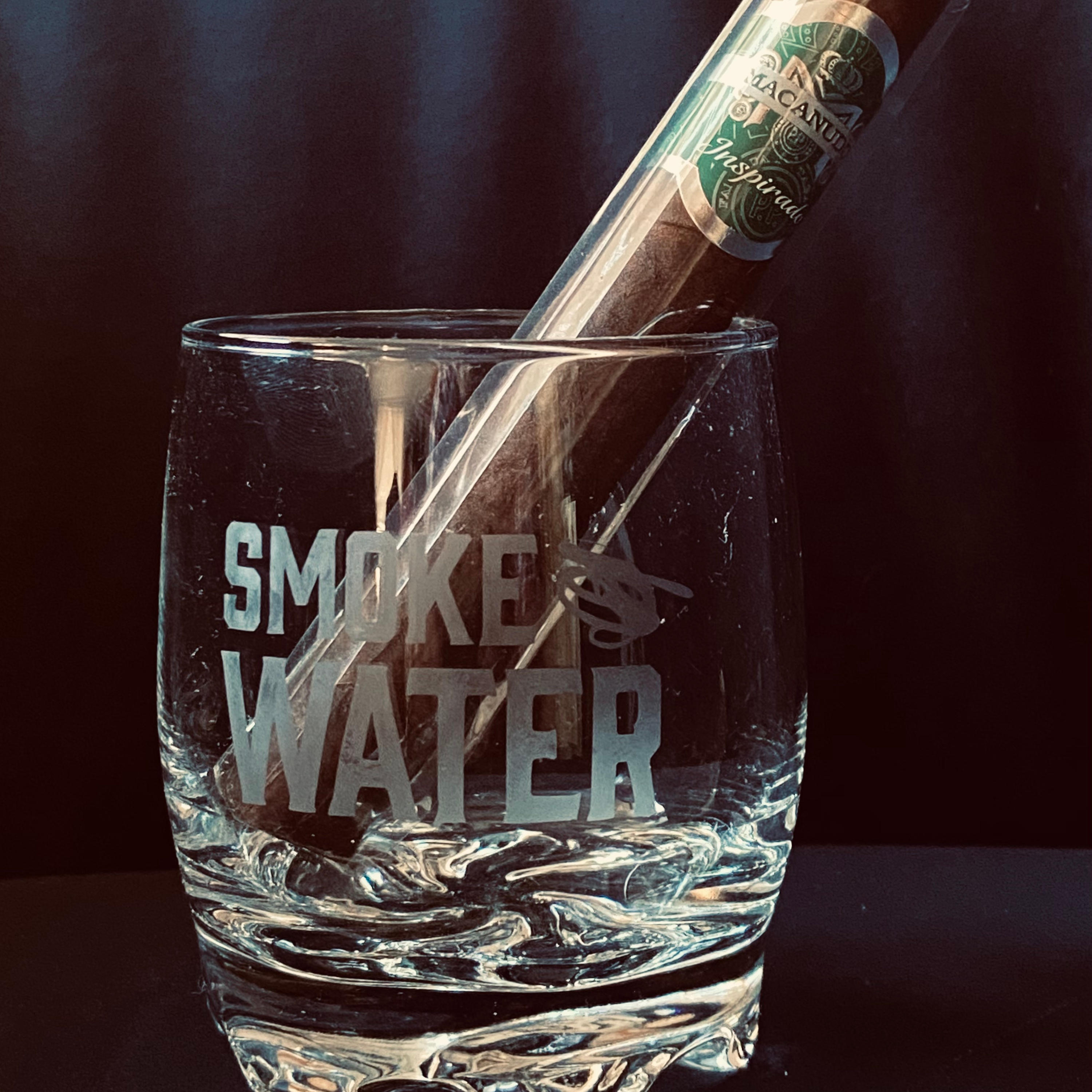 It's also time for a small giveaway! Glassware and a Macanudo Inspirado Green Cigar. Go follow Smoke and Water on Facebook and Instagram, share at least one post and tag three of your friends on Instagram. Winner announced next week.