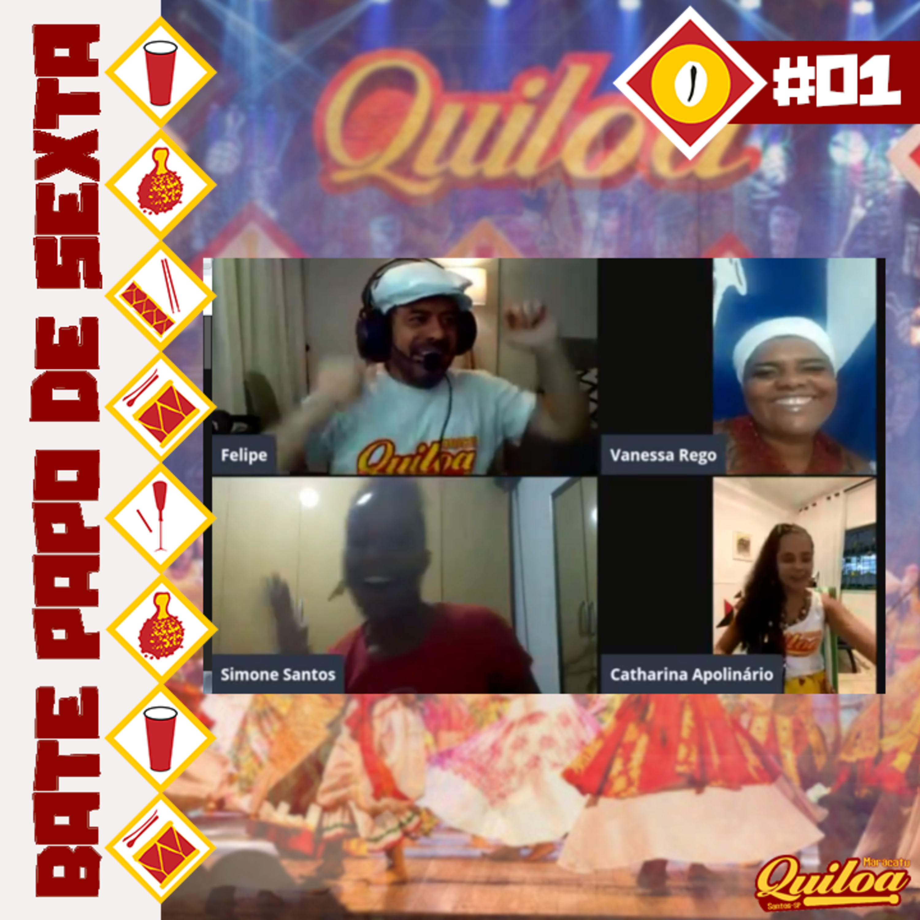 Mais uma conversa pré estreia vídeo da série Quiloa "da rua ao palco". Além de Rainha Simone, Vanessa Rego e Felipe Romano, contamos com a participação de Catharina Apolinario, integrante do Maracatu Quiloa na Ala das Chitas, falando de sua experiênca com o Maracatu. Transmitido ao vivo no dia 01/05/2020.