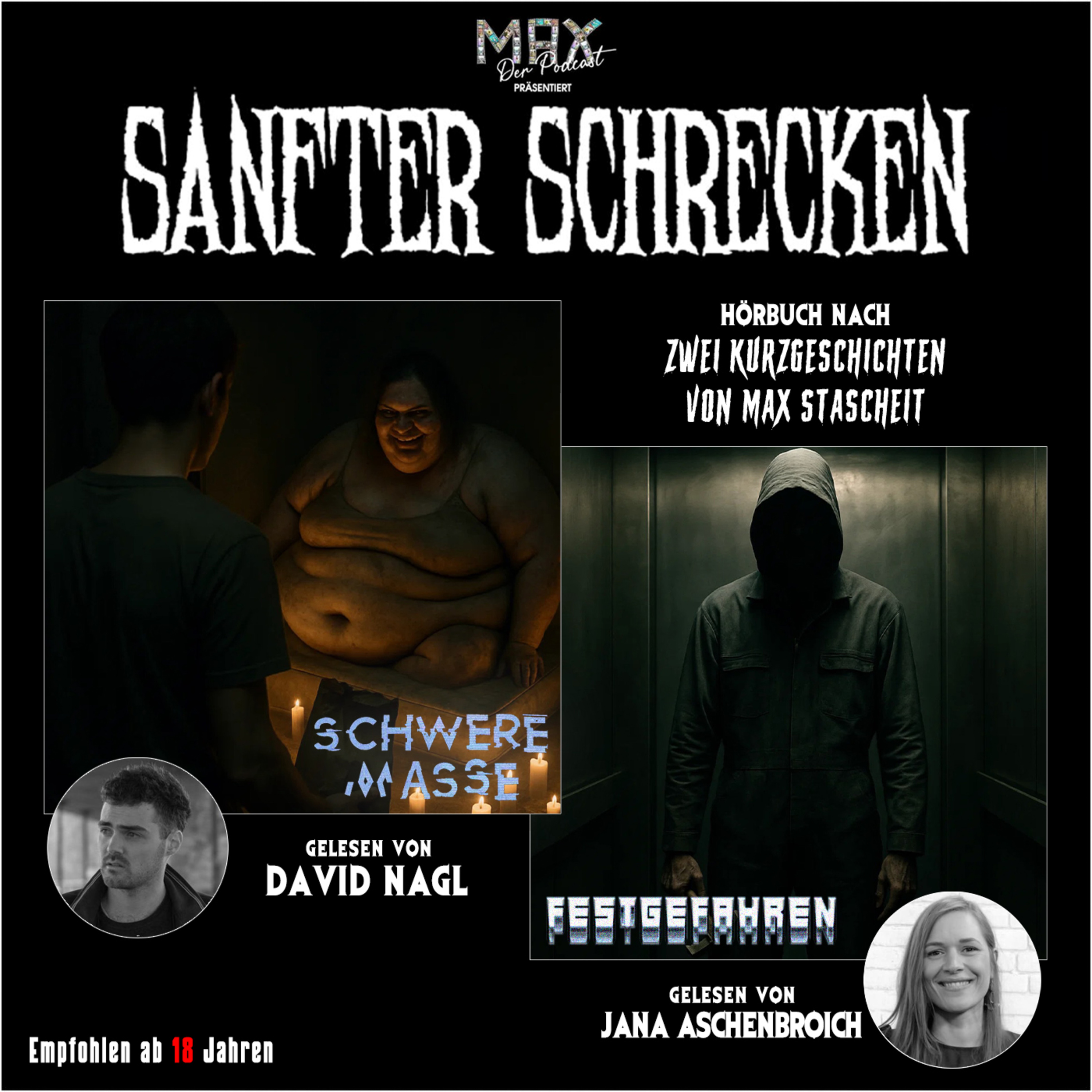 Schwere Masse - gelesen von David NaglAiden Tanners Vorliebe für Frauen entspricht nicht wirklich der Norm. So sucht der technikversessene junge Mann auf einer illegalen Seite nach einem ganz besonderen "Leckerbissen". Doch nicht immer ist das, was man sucht auch das, was man findet... Festgefahren - gelesen von Jana AschenbroichDie junge Miranda muss am Halloweenabend Überstunden machen und wird zu ihrem Leidwesen den penetranten Hausmeister Steve nicht los, der ihr seine Liebe gesteht. Miranda muss das Gebäude schnellstens verlassen, denn Steves gekränktes Ego wird bald zur tödlichen Gefahr...0:00 Intro01:08 ‚Schwere Masse‘ - gelesen von David Nagl17:20 ‚Festgefahren‘ - gelesen von Jana Aschenbroich