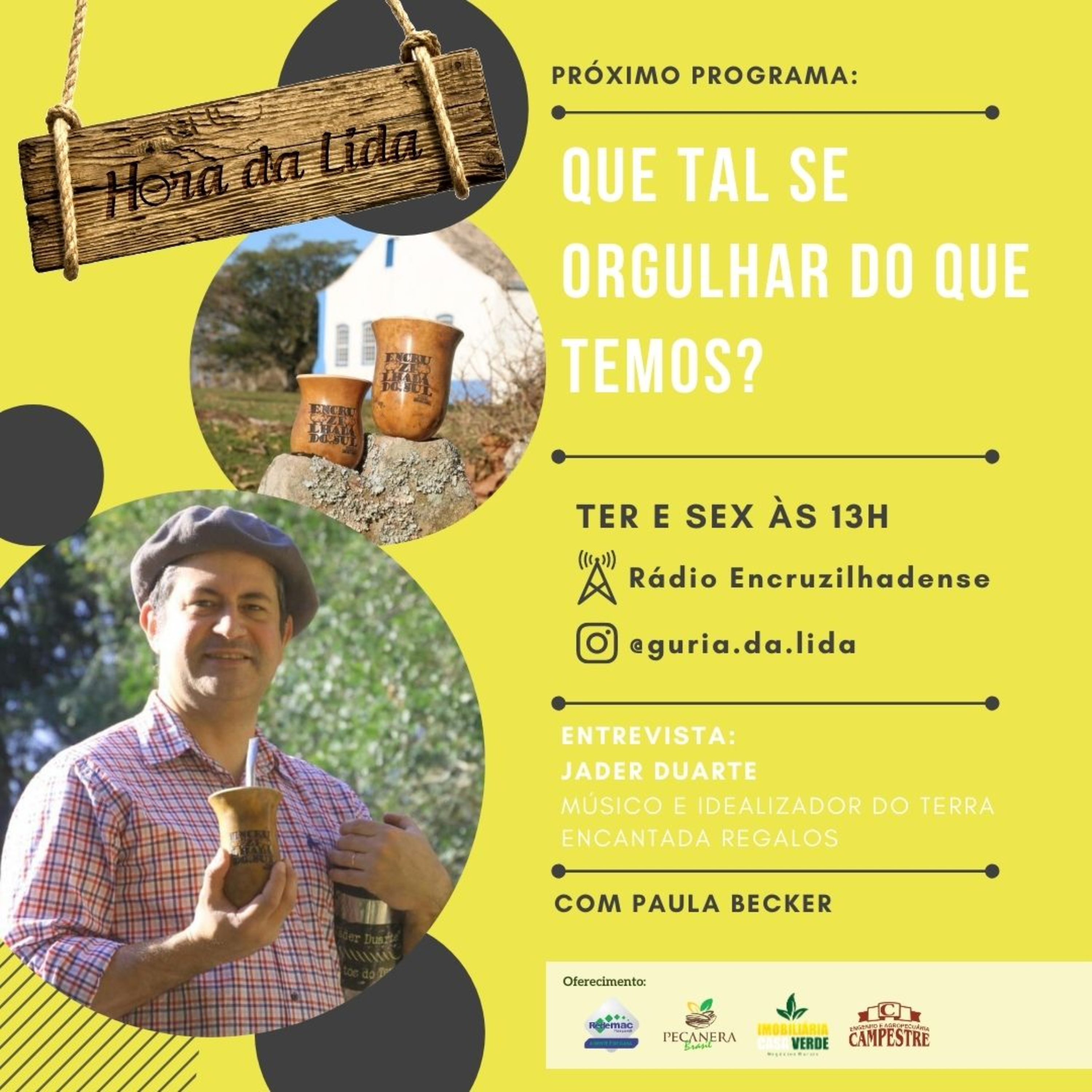 Paula Becker entrevista Jader Duarte, músico e idealizador da Terra Encantada Regalos, uma empresa que nasceu com o intuito de promover o orgulho Encruzilhadense, com itens e produtos incríveis que ressaltam a cultura e os pontos turísticos do Município.