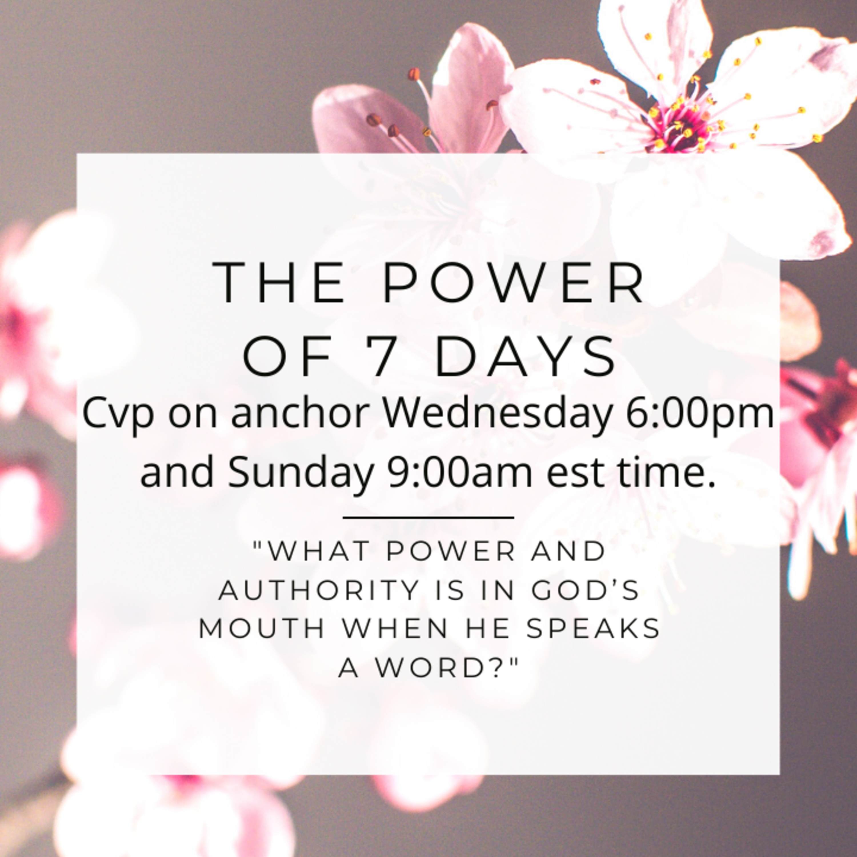 Cvp in today’s message the Lord will review the Power and authority in his mouth when he speaks a word how much weight a carry and what a means to his sons.