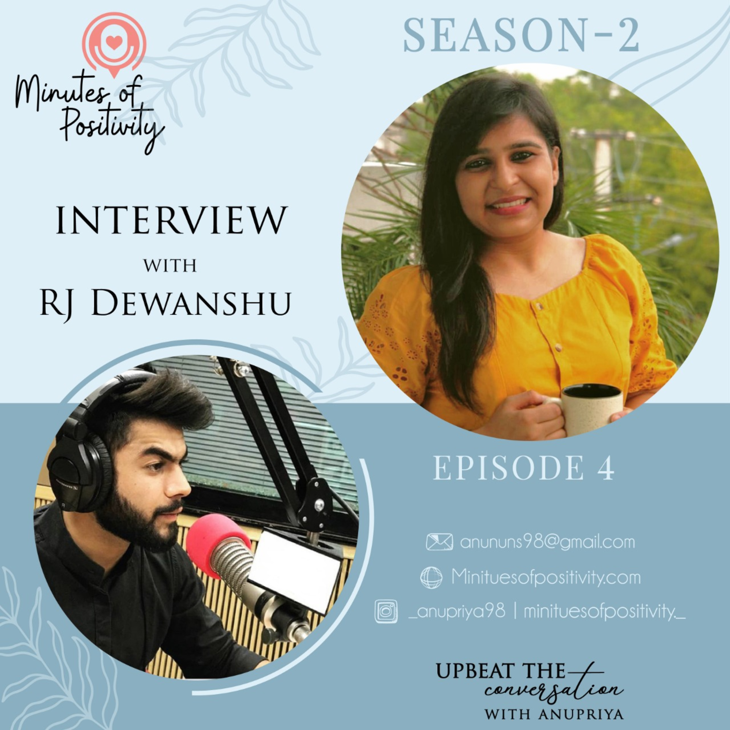Hello Guys, Welcome to my Podcast Upbeat the Conversation with Anupriya. Today I have a very extraordinary and very intellectual person with me to talk about his journey, his profession. To know more about the episode go listen to it.